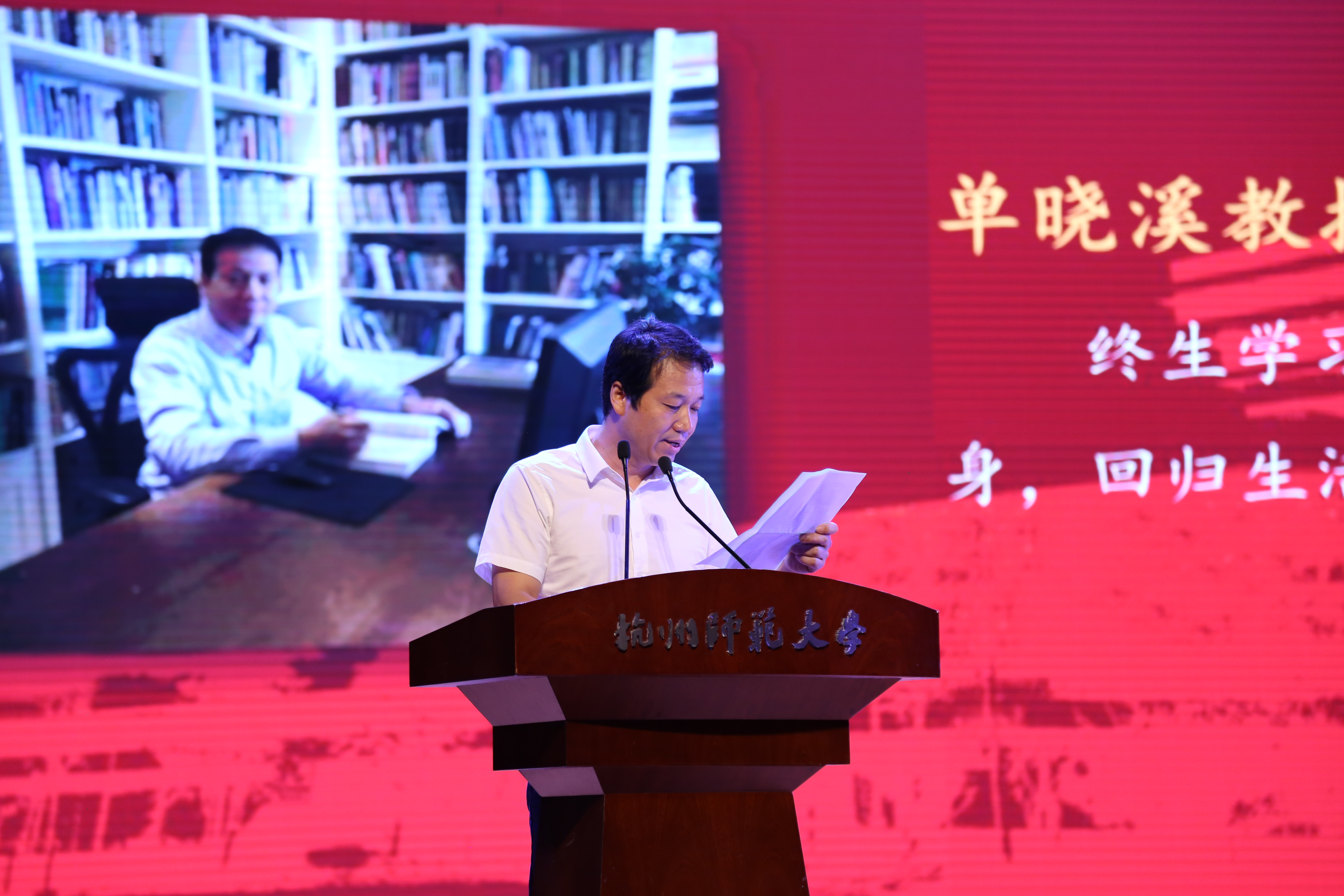 单小曦教授作为研究生导师代表作了题为“致作为‘另类’的毕业生”发言。他感慨即将毕业的同学是“另类”的,富有活力又充满激情。同时他也希望同学们能够收起浮躁,正视当下,以迎接未知的挑战。面对复杂多面、矛盾重重的社会,他先建议同学们寻求一份适合的工作作为安身立命之本,同时可以帮助自我价值的实现。其次要寻觅生活中幸福感,培养独立思考、辨别是非的能力,能够帮助我们更好地完善自己。最后保留对世界的善意,能够不经意间体会到生活的美好。