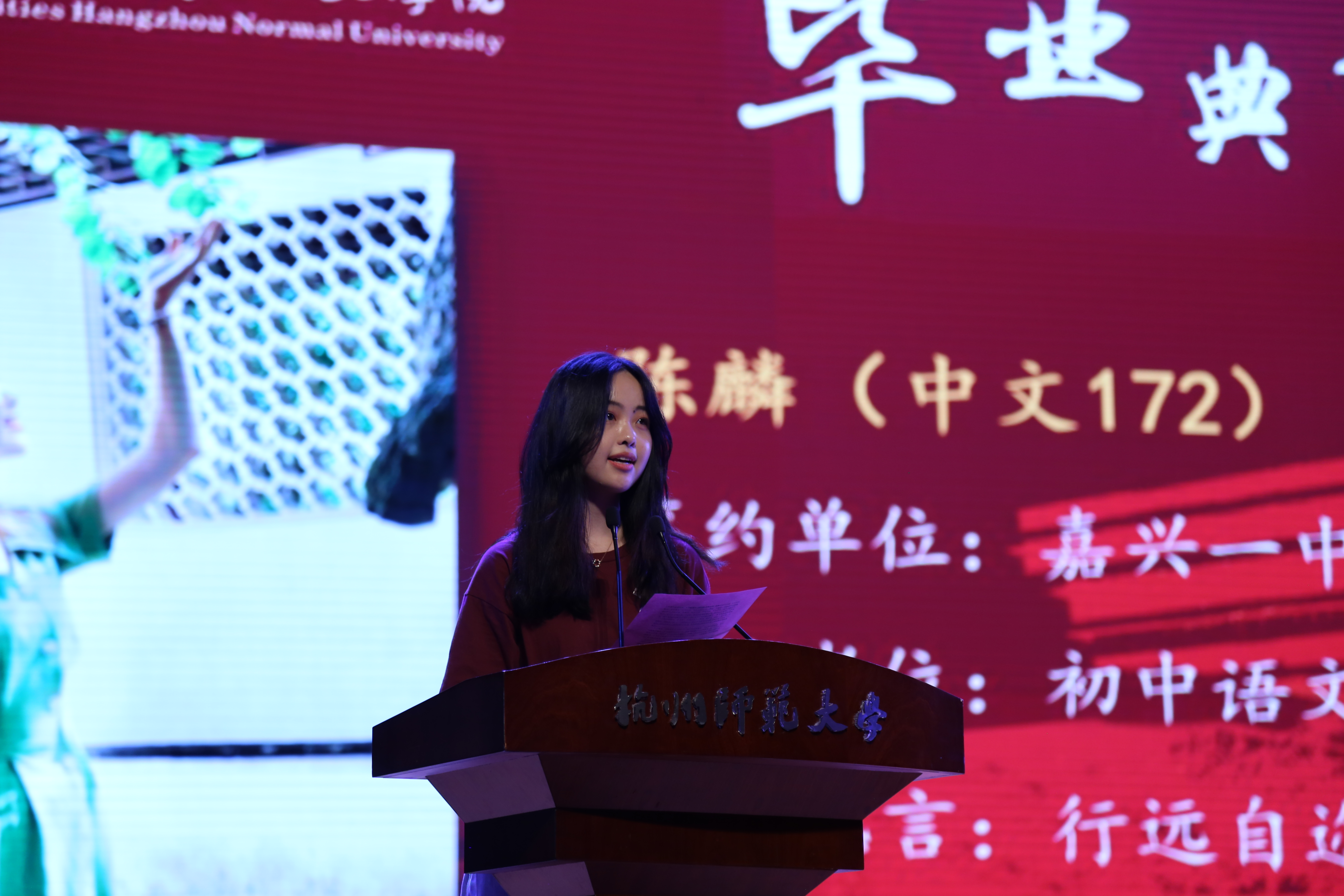 本科毕业生代表陈麟回顾了在学院的成长点滴,她表示将会把“勤慎忠恕 博雅精进”的校训和“博学笃行 止于至善”的院训牢记在心,并且感谢学院的精心培养。研究生毕业生代表朱翀分享了自己的大学生涯,他表示毕业不仅代表着结束,也代表前进的继续,人生的旅途没有终点。即便经历了不太圆满的过程但也可以从中感悟人生的真谛并且助力我们成长。