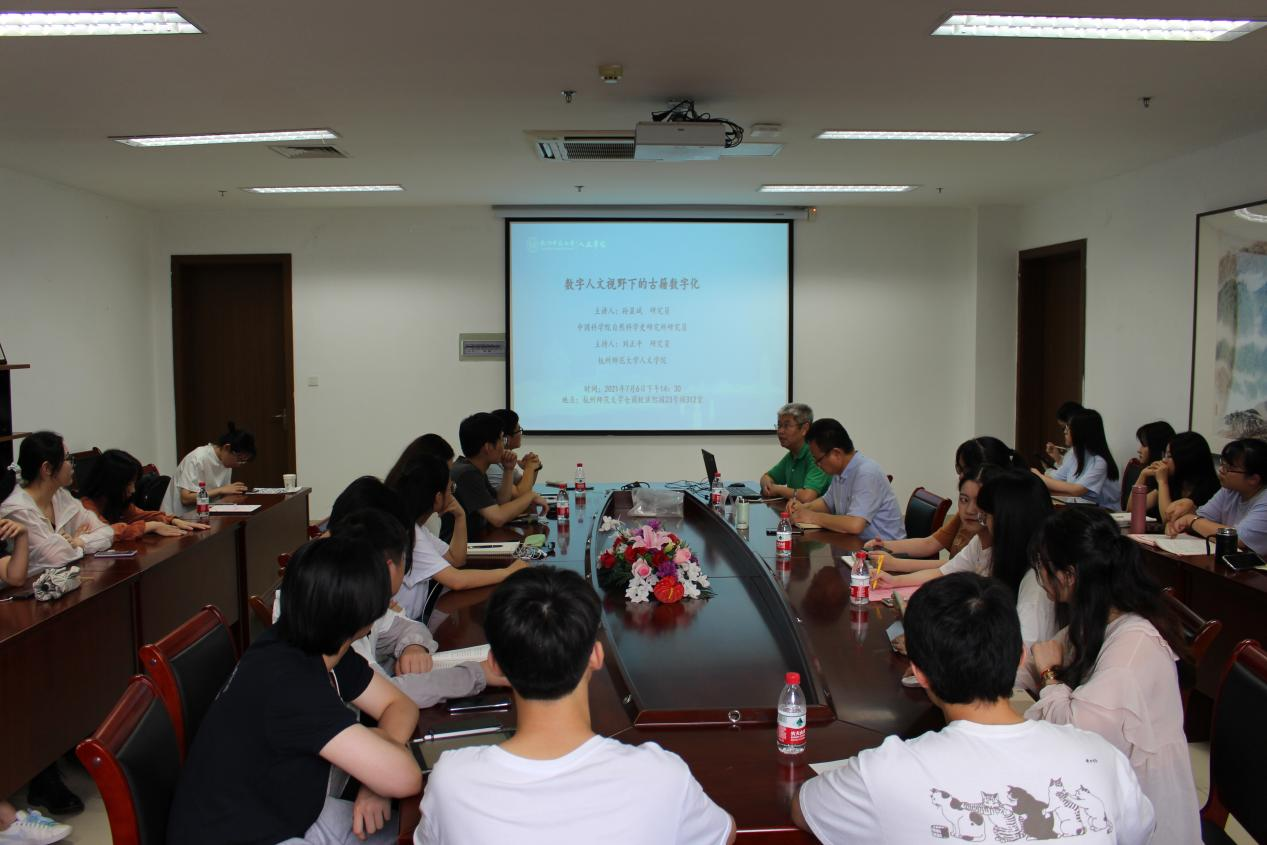 2021年7月6日下午14:30,no视频 “太炎讲堂”青年学者系列讲座之“数字人文视野下的古籍数字化”讲座在恕园23-312召开,北京大学中文系古典文献学博士、现中国科学院自然科学史研究所研究员、北京大学数字人文中心兼职研究员孙显斌受邀为主讲人,no视频 刘正平老师为主持人,院部分教师、研究生与本科生参与讲座。