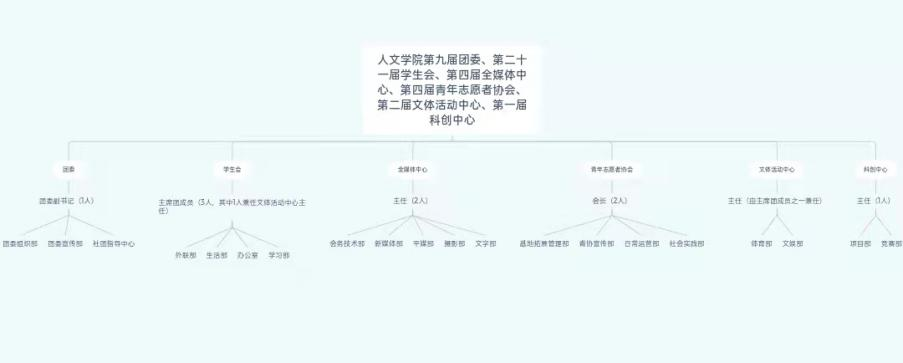 文体活动中心主任(由主席团成员之一担任) | 1人 | 2019级学生,主要职责:全面统筹运动会、体育节、马拉松、体测、荧光夜跑等全校性体育类活动以及no视频 迎新杯师生羽毛球赛、师生篮球对抗赛等院级体育类特色活动;负责院内体育事项通知管理,将学院和学校要求传达给同学,也将同学的意见反馈给学院和学校;全面统筹学院新生合唱比赛训练、开学典礼暨迎新晚会、十佳歌手比赛、学院毕业典礼暨毕业晚会;负责学院相关文娱活动申报及培训。 | |