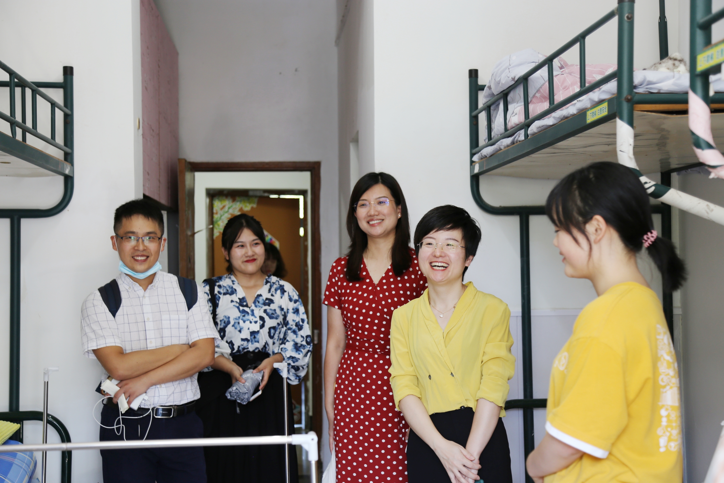 随后,院党委书记诸英、党委副书记钱珊,团委书记孔祥亮、团委副书记李悦、新生辅导员林伊纯,到各新生寝室进行走访,与新生面对面交流。学院领导交代了开学注意事项,尤其要做好寝室用电安全、防诈骗以及疫情防控工作。