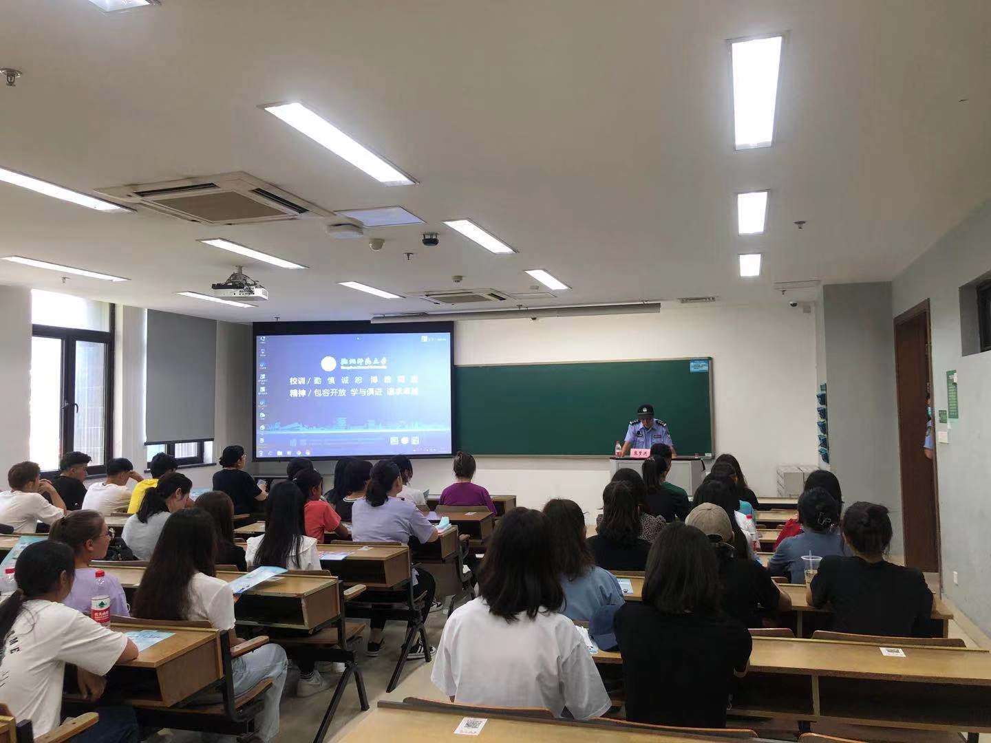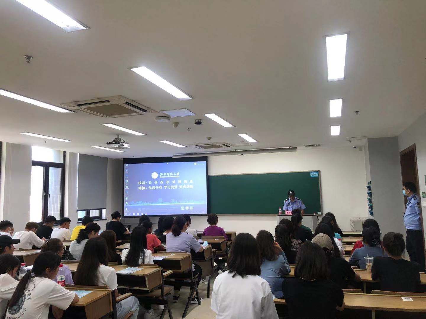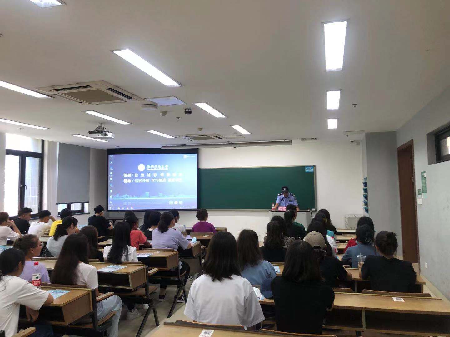 为提高2021级新生防范电信网络诈骗能力,维护学生利益,确保校园安全稳定,9月23日下午1时30分,no视频 于恕园12号楼305室举行预科生新生防诈骗宣传教育讲座。仓前派出所警官张梦洲以及三位内派老师杨春花、王咏、阿地力·乃买提应邀出席讲座,全体2021级预科生新生参与讲座。讲座由学工办主任陈晓玲主持。