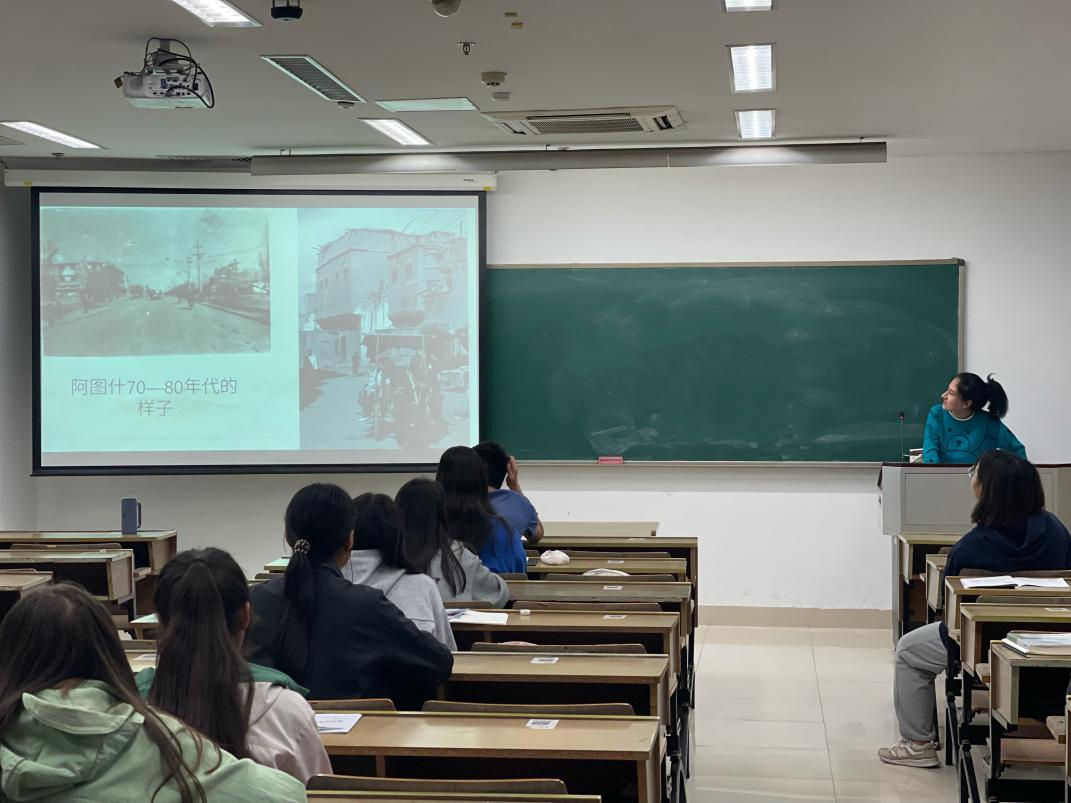 迪力胡马进一步阐述了优秀共产党员的传帮带影响。她爷爷也十分崇拜赛福鼎先生,作为赛福鼎先生的老乡,他受到赛福鼎先生身上精神的鼓舞,入党参军,成为了一名和赛福鼎先生一样优秀的共产党员。随后,迪力胡马尔同学介绍到了她的家乡阿图什,新中国成立以来,阿图什在党的带领下发生了翻天覆地的变化——环境变好了,人民富裕了,社会发展了,正是党引领着新疆、引领着阿图什创造了现在美好的今天!