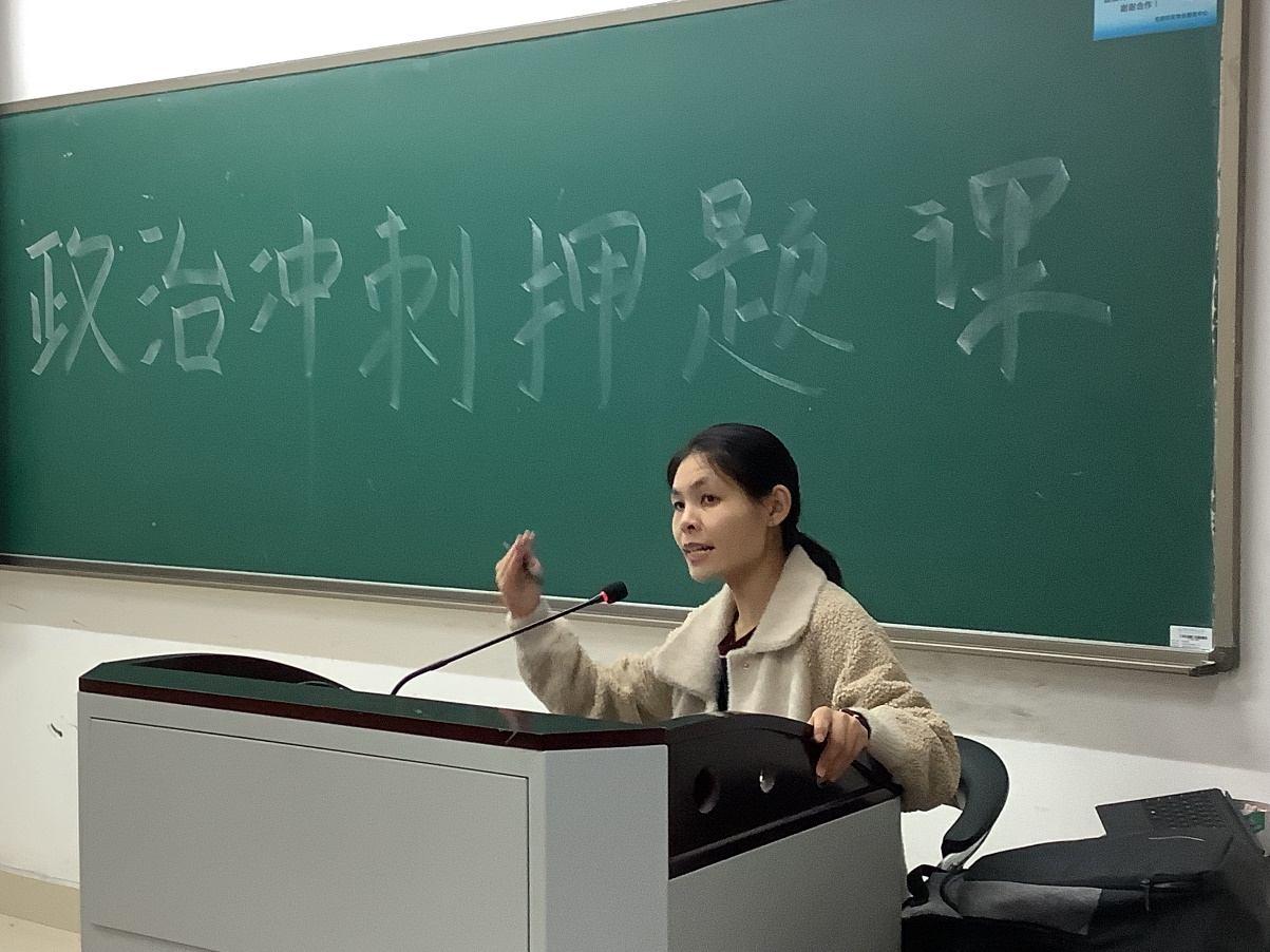 11月12日下午13时30分,no视频 在恕园12号楼203教室顺利举办了政治冲刺押题课,郭艳红老师莅临指导。本次冲刺押题课主要从“考情分析”“真题讲解”“知识巩固”“答题技巧“四个部分展开,郭艳红老师的讲述风趣幽默,全程干货满满。