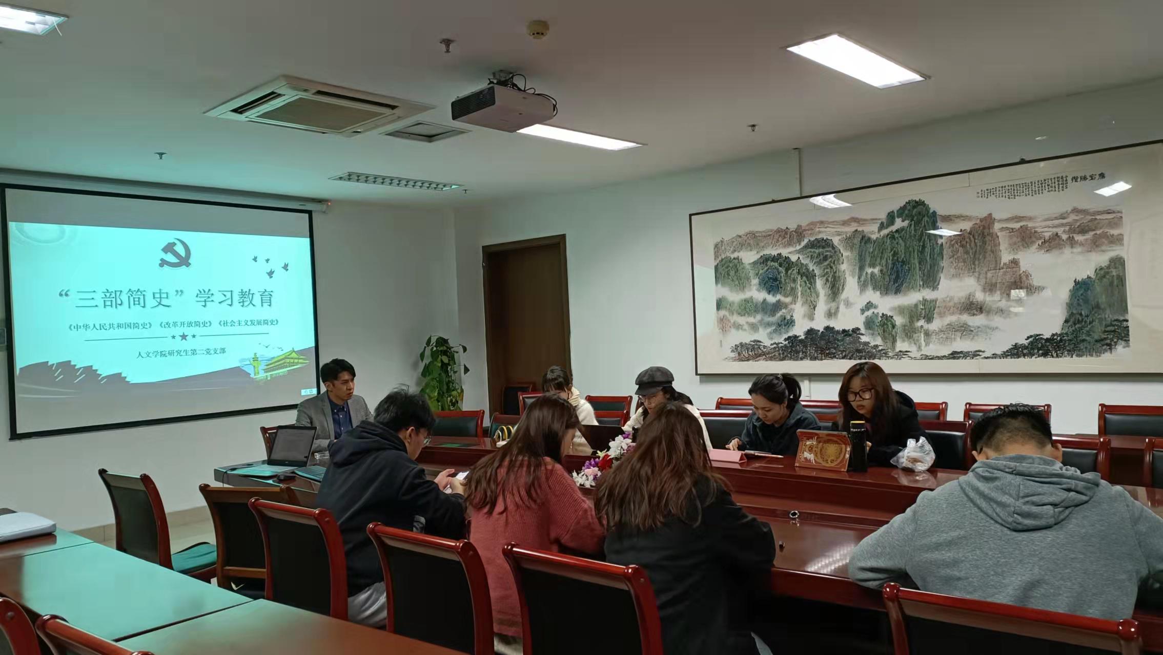 研究生第二党支部于恕园23号楼312室开展了支部主体党日活动。会议以“学好三部简史,牢固树立正确历史观”为主题。党支部书记刘华章及支部全体党员参加了此次会议。
