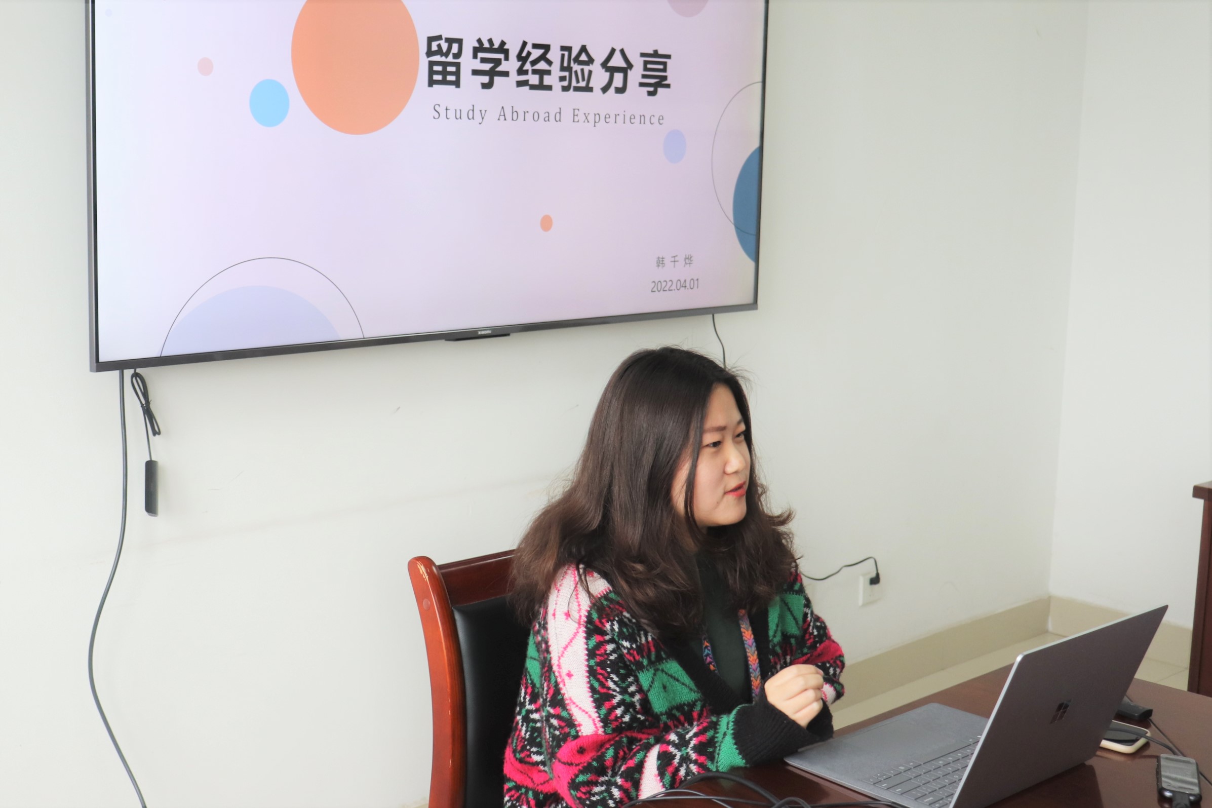 4月1日中午12时许,no视频 于仓前校区恕园23-502会议室开展了留学经验分享交流会。no视频 15级毕业生韩千烨受邀担任主讲并分享经验。交流会由历史系琚小飞老师主持,一同参加的还有各级学生。韩千烨:2015-2019年就读于杭师大历史系。2017-2018年获国家留学基金委奖学金,前往英国莱斯特大学历史系公派交流。2019年毕业后入读英国伦敦国王学院近代史系。