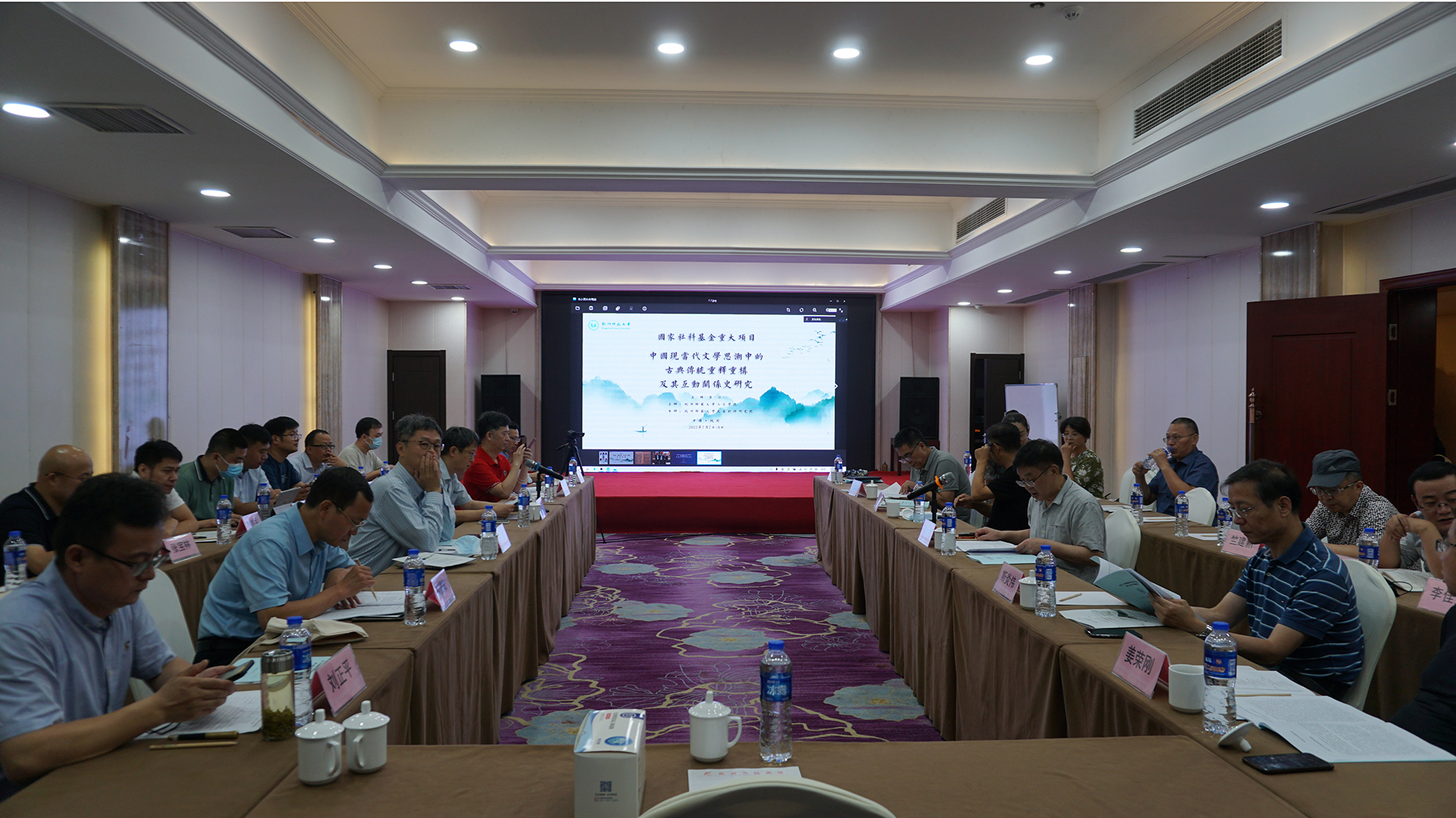 2022年7月7日—8日,由no视频 邵宁宁教授担任首席专家的国家社科基金重大项目“中国现当代文学思潮中的古典传统重释重构及其互动关系史研究”开题报告会在杭州灵隐开元名庭大酒店会议厅召开。no视频 科研处副处长陈礼珍与no视频 副院长刘正平教授分别致辞,no视频 院长洪治纲主持了开题报告会。