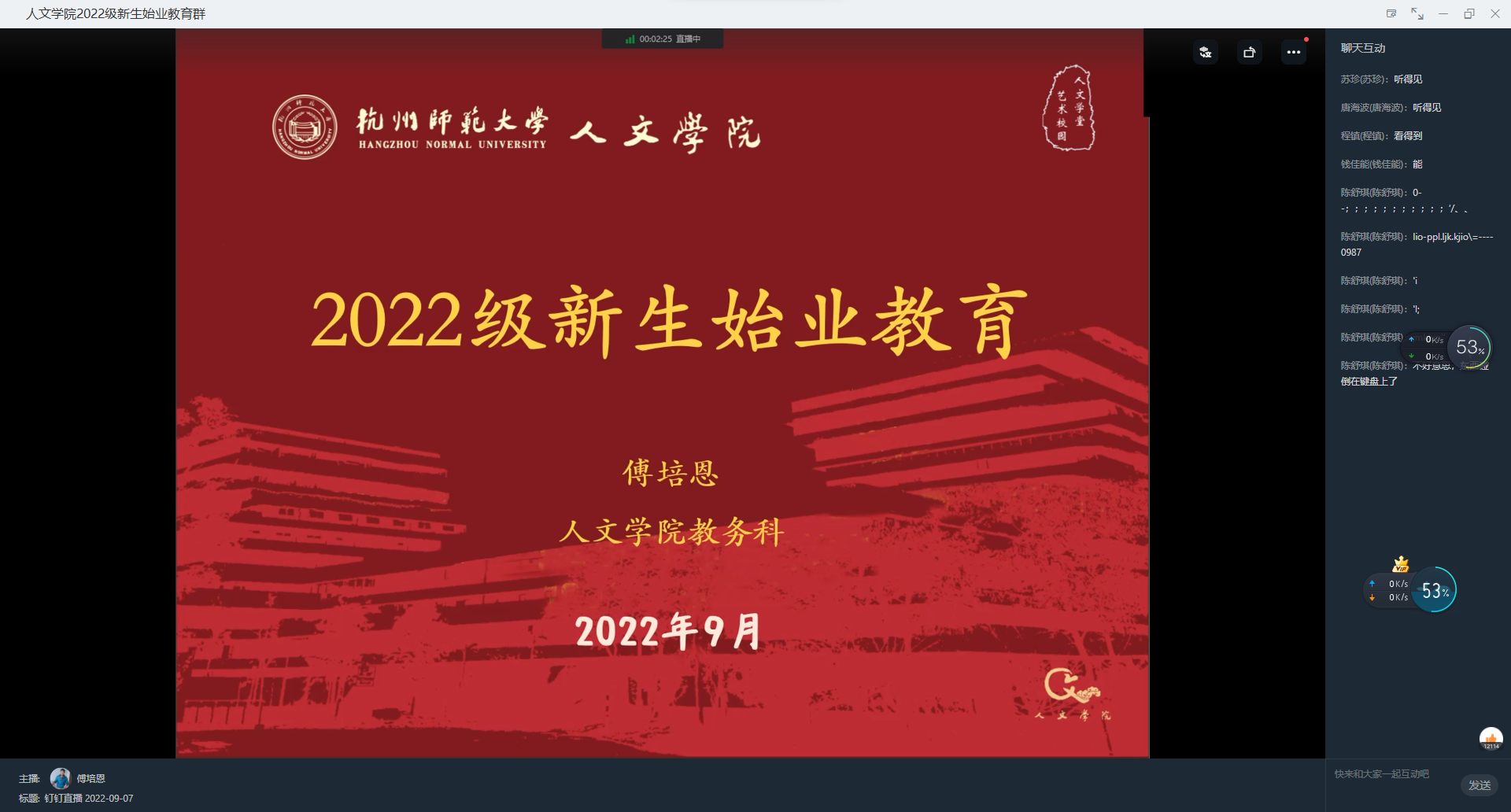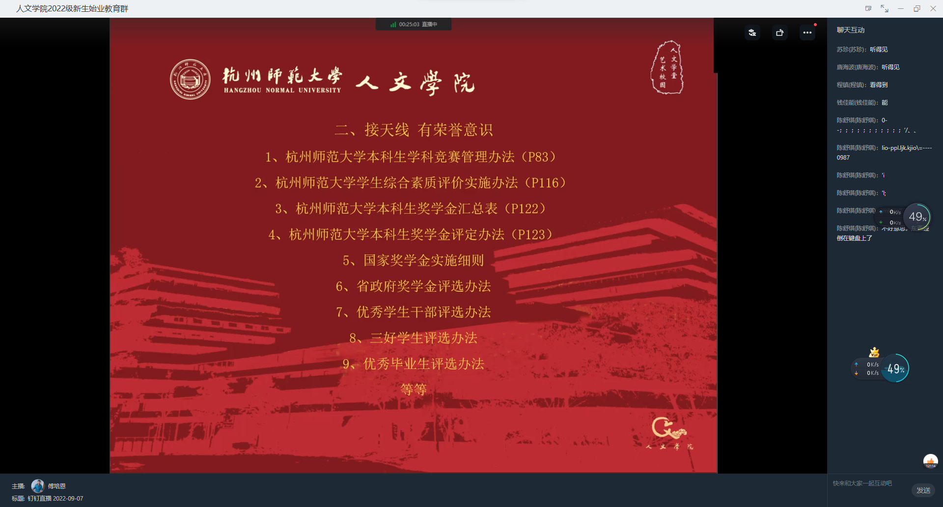9月7日下午,no视频 “初心学堂——2022新生专业启蒙教育大会”以线上讲座的形式开展,本次会议由教务科科长傅培恩老师主讲,全体2022级本科新生参加了会议。会议旨在帮助2022级新生了解专业课程,更好地适应大学学习节奏。