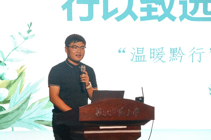 随后,来自“温暖黔行”暑期支教团的汪洋以人文学长的身份,将自己在一年大学生活中成长历程与所思所感娓娓道来。这个暑假,他与实践团队一行从杭州开赴贵州黔东南少数民族地区支教。他表示,在黔东南的社会实践确实是苦的、累的,但也正因为如此,它更是有价值的、值得去做的。“我们带去的知识、带去的思想、带去的东部风情,也深深地影响每一位孩子,使他们从茫然无措、缺乏人生规划到目标清晰、满怀憧憬。”汪洋强调,社会实践在我们成长过程中起到的重要作用,这也就是为什么我们学院历来重视实践育人工作,坚持寒暑假期广泛开展各类社会实践活动的原因。他提到,注重礼节、敢闯敢为、善于展示是社会实践者需要具备的重要品质,希望人文学子能坚定理想信念,为实践育人贡献自己的力量,