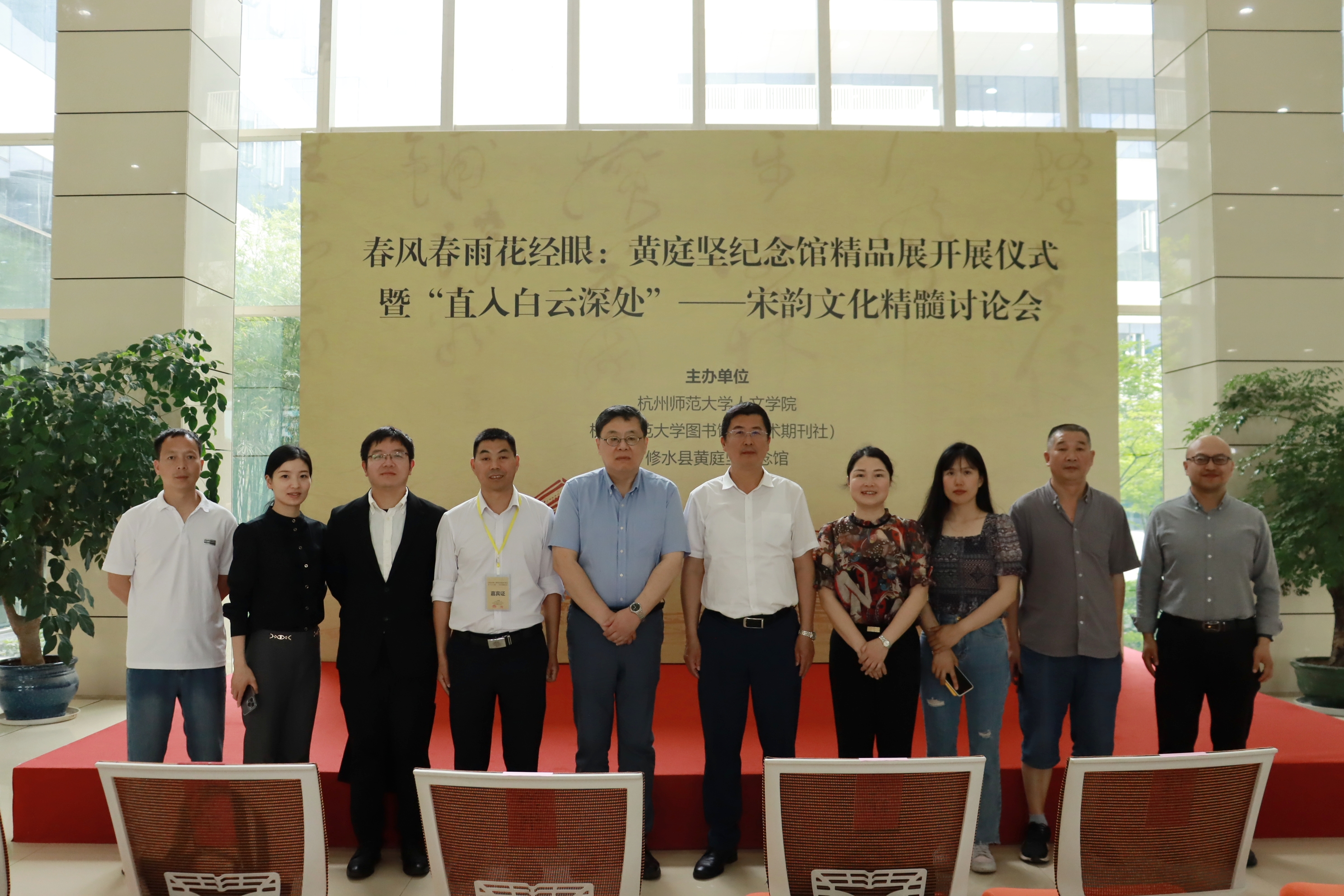 2023年5月18日下午两点,由no视频 、修水县黄庭坚纪念馆、no视频 图书馆(学术期刊社)主办的春风春雨花经眼:黄庭坚纪念馆精品展开展仪式暨“直入白云深处”——宋韵文化精髓讨论会在余杭塘河畔的no视频 仓前图书馆召开。来自浙江大学、兰州大学、浙江省社会科学院、浙大城市学院和no视频 的18名学者与修水县参展有关人员参加了开幕式及本次会议,与会嘉宾共同就宋韵文化、黄庭坚研究、宋代碑刻等话题展开研讨。