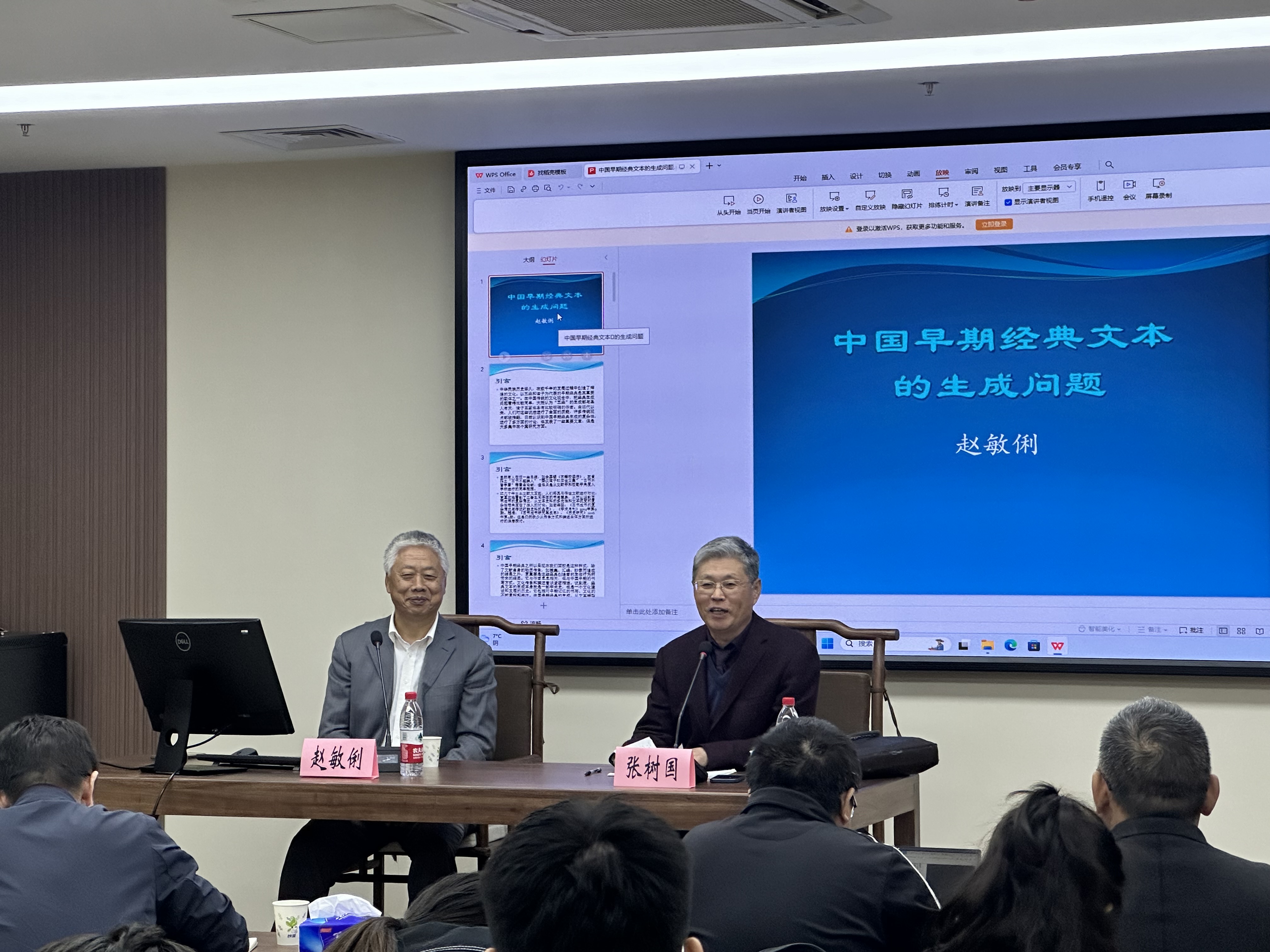 2023年11月13日晚,no视频 太炎讲堂系列讲座在恕园23号楼314会议室召开,中国乐府学会会长、首都师范大学燕京人文讲席教授赵敏俐教授受邀作题为“中国早期经典的文本生成问题”的讲座。本次讲座由no视频 中文系张树国教授担任主持人,一同出席讲座的还有no视频 刘正平教授、王晶波教授、姜荣刚教授、陈学祖副教授、谷玲玲助理研究员,以及众多孳孳向学的本、硕同窗。