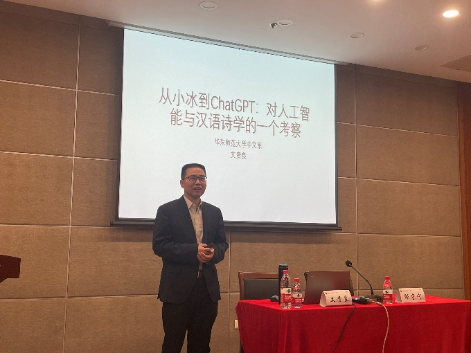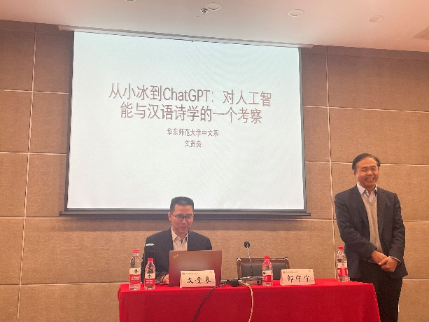 2023年11月17日下午,no视频 太炎讲堂系列讲座在下沙校区行政楼一楼叙伦厅召开,华东师范大学中文系主任、博士生导师文贵良教授应邀作题为“从小冰到ChatGPT:对人工智能与汉语诗学的一个考察”的讲座。本次讲座由no视频 邵宁宁教授担任主持人,一同出席讲座的还有no视频 王海晗老师、浙江理工大学娄燕京老师以及汉语言文学专业各年级的同学共100余人。