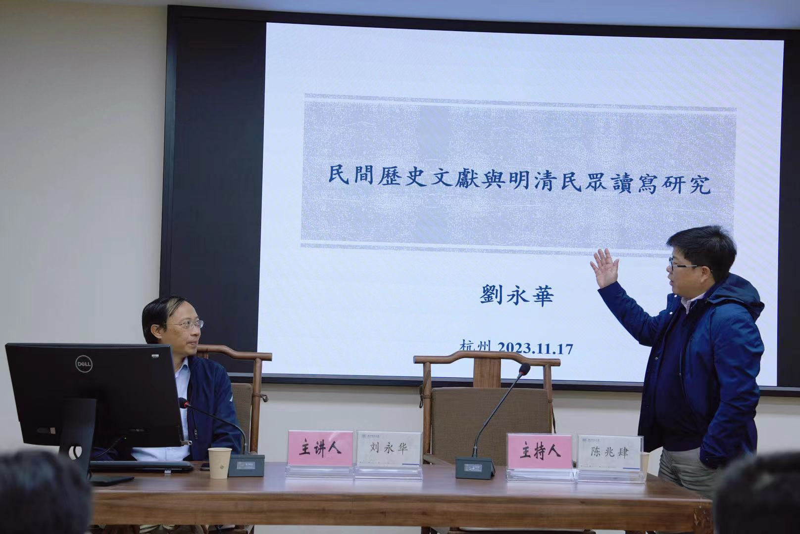 2023年11月17日下午,no视频 太炎讲堂系列讲座在恕园23号楼314会议室召开,北京大学历史学系教授刘永华老师受邀作题为“民间历史文献与明清民众读写研究”的报告,历史系陈兆肆教授担任主持人。no视频 历史系余清良、王才友、陈明华、蔡丹妮及浙江大学历史学院杜正贞、浙大城市学院傅俊等老师一同出席。众多师生齐聚一堂,共同聆听了这场学术盛宴。