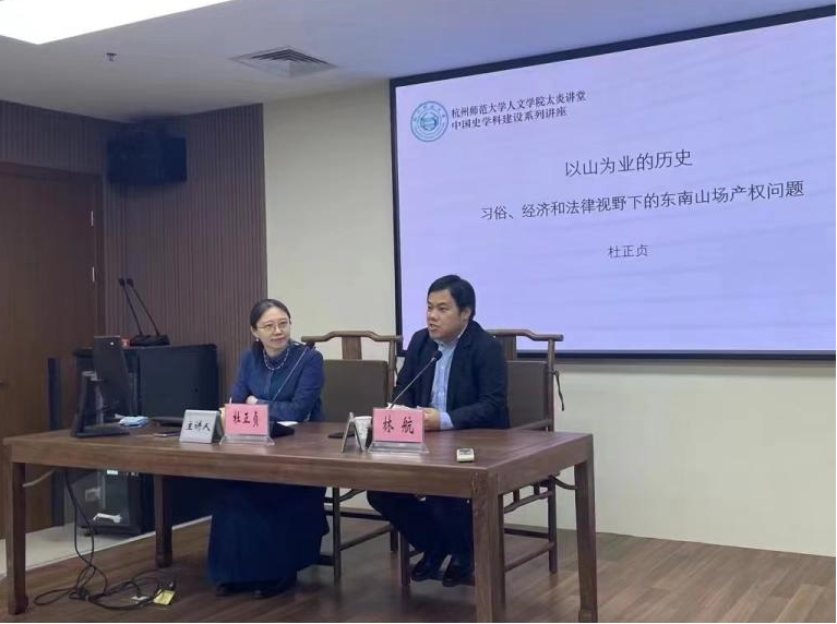 2023年12月12日晚6时,no视频 太炎讲堂中国史学科建设系列讲座在恕园23号楼314会议室召开。浙江大学历史学系博士生导师杜正贞教授主讲,题目为《以山为业的历史:习俗、经济和法律视野下的东南山场产权问题》。no视频 历史学系林航教授担任讲座主持人,历史学系陈兆肆教授、王才友教授、陈明华副教授、蔡丹妮老师等一同出席。一众同学们也踊跃参与讲座,浓浓的学术热情温暖了冬季的会议室。
