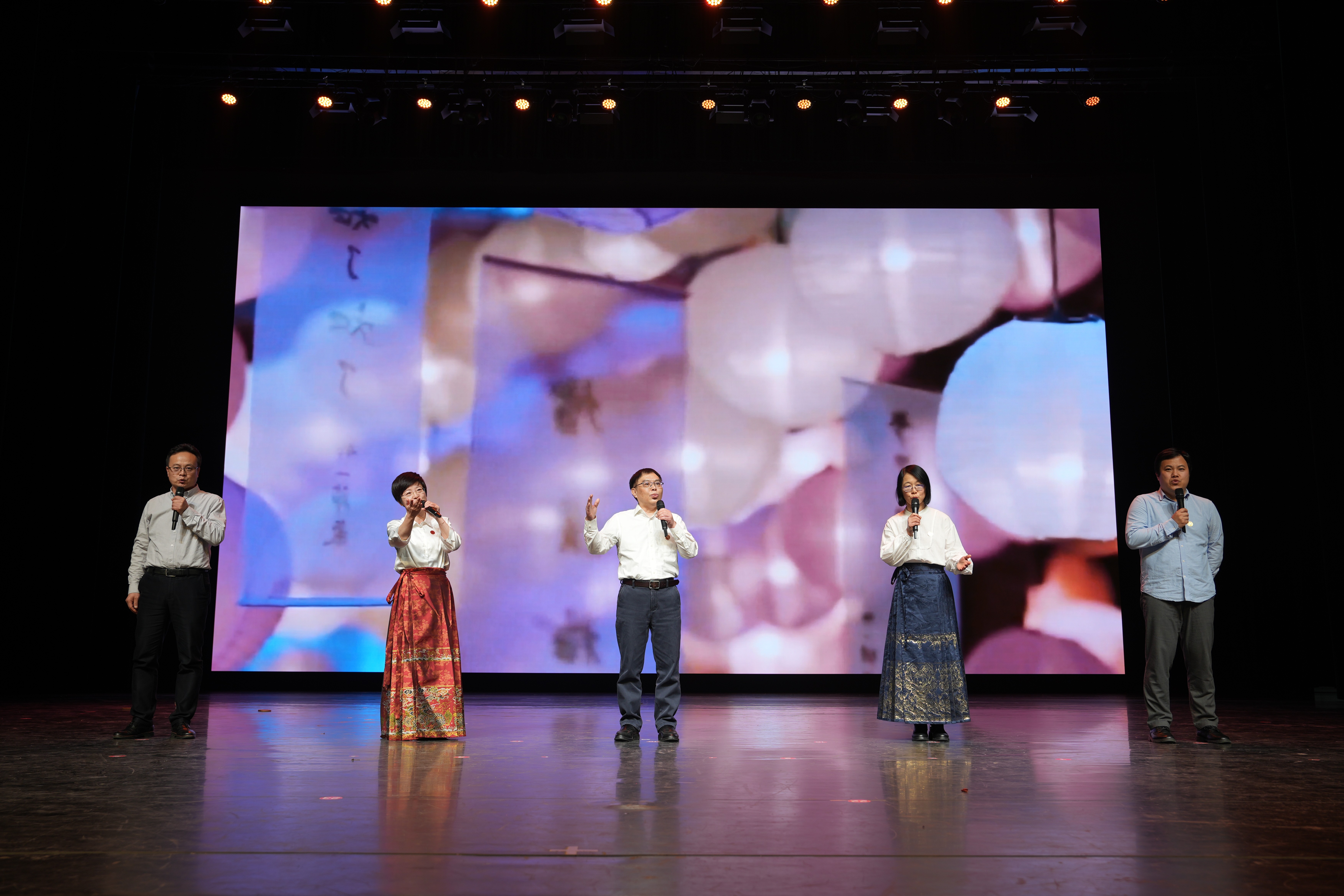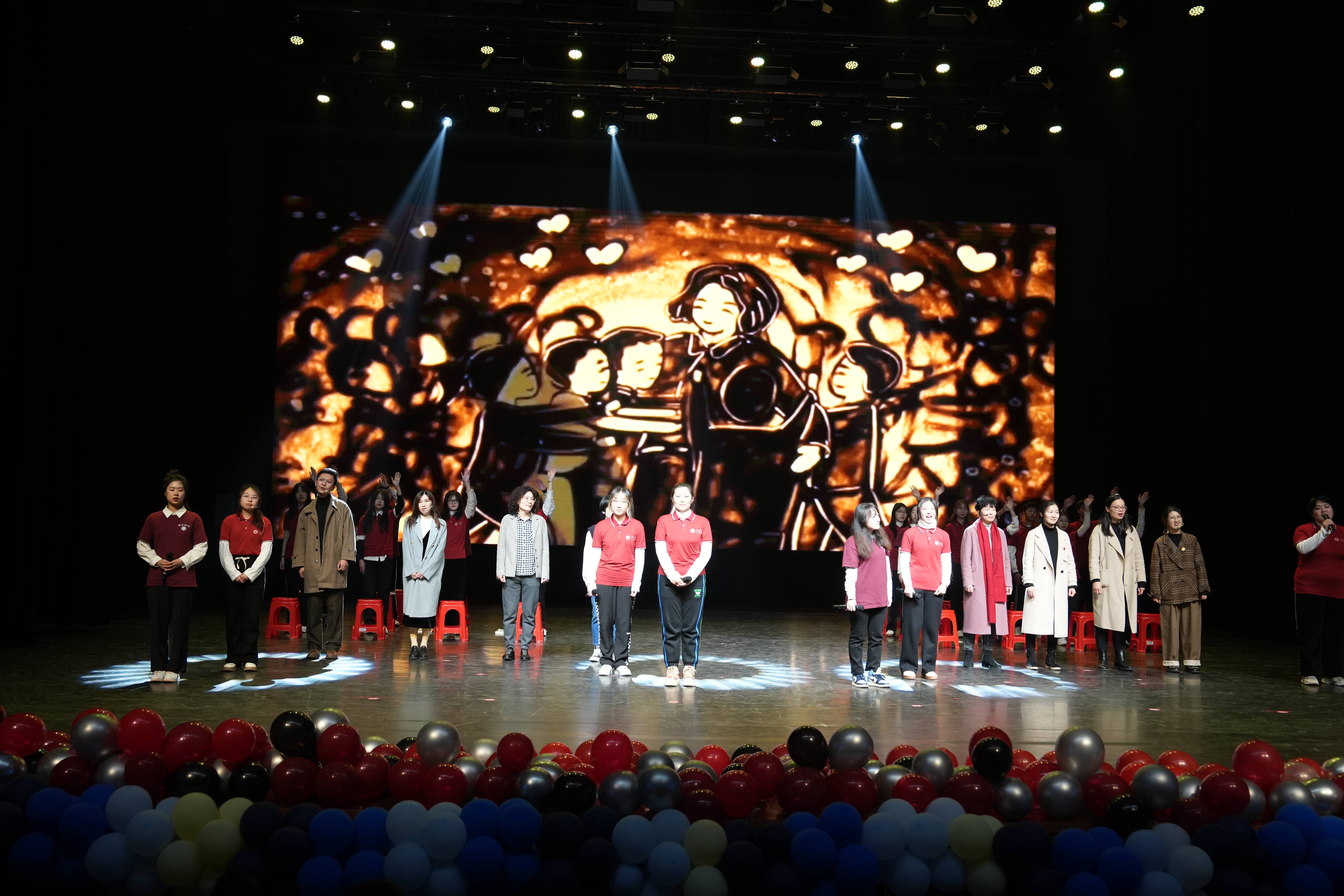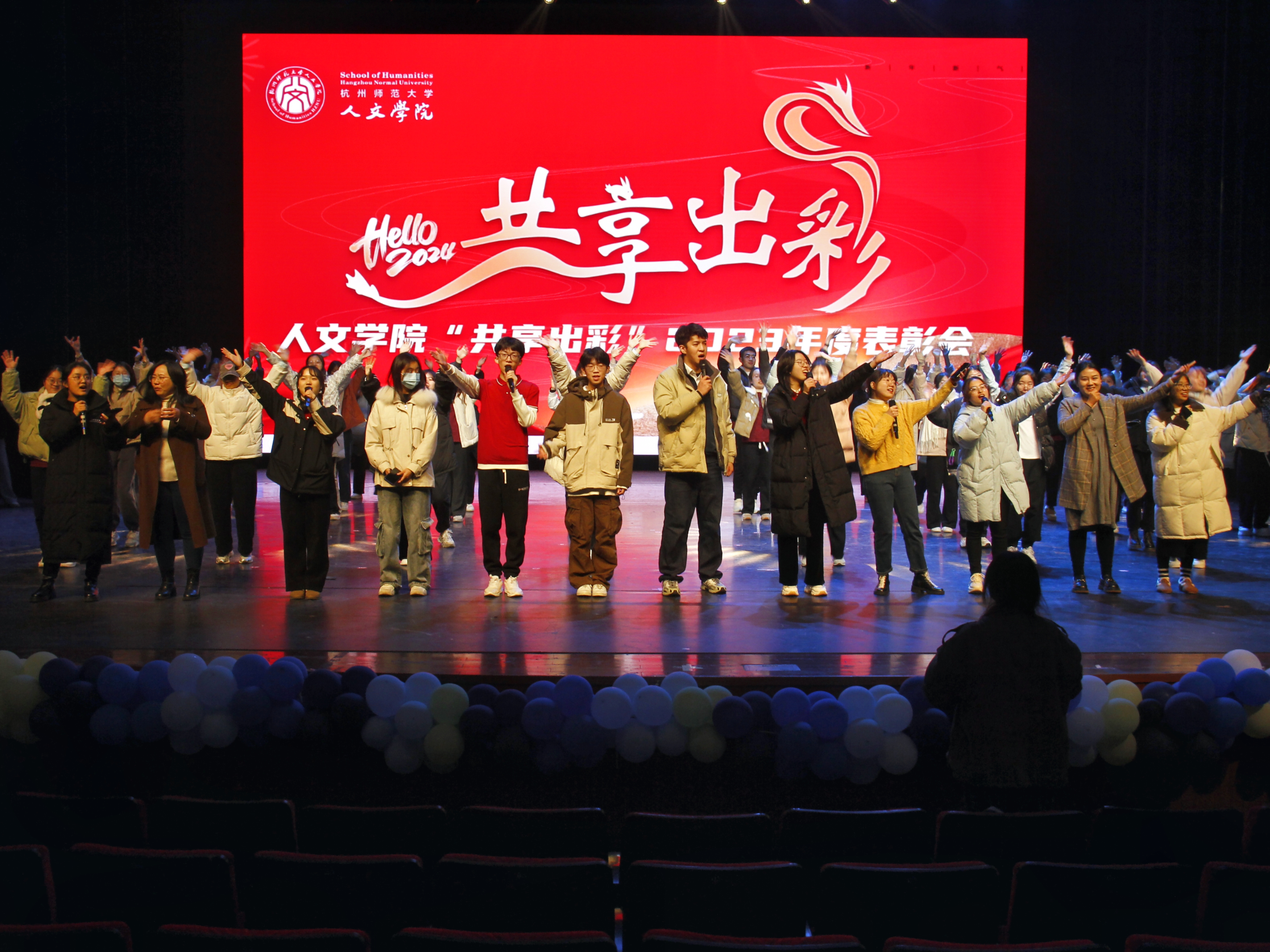 在表彰大会上,师生同台互动表演。资深教授沈松勤携手院领导班子演绎朗诵,校五星级社团嘉礼华服社的汉服走秀大放光彩。学院参与亚运的老师与学生代表合唱《同爱同在》,共同回忆亚运精彩瞬间。预科班全体成员带来独具特色的新疆歌舞表演,拉动了现场表彰气氛。陈漪、王海晗与学生共同表演话剧《两只狗的生活意见》,以此表达年轻一代对生活的理解。
