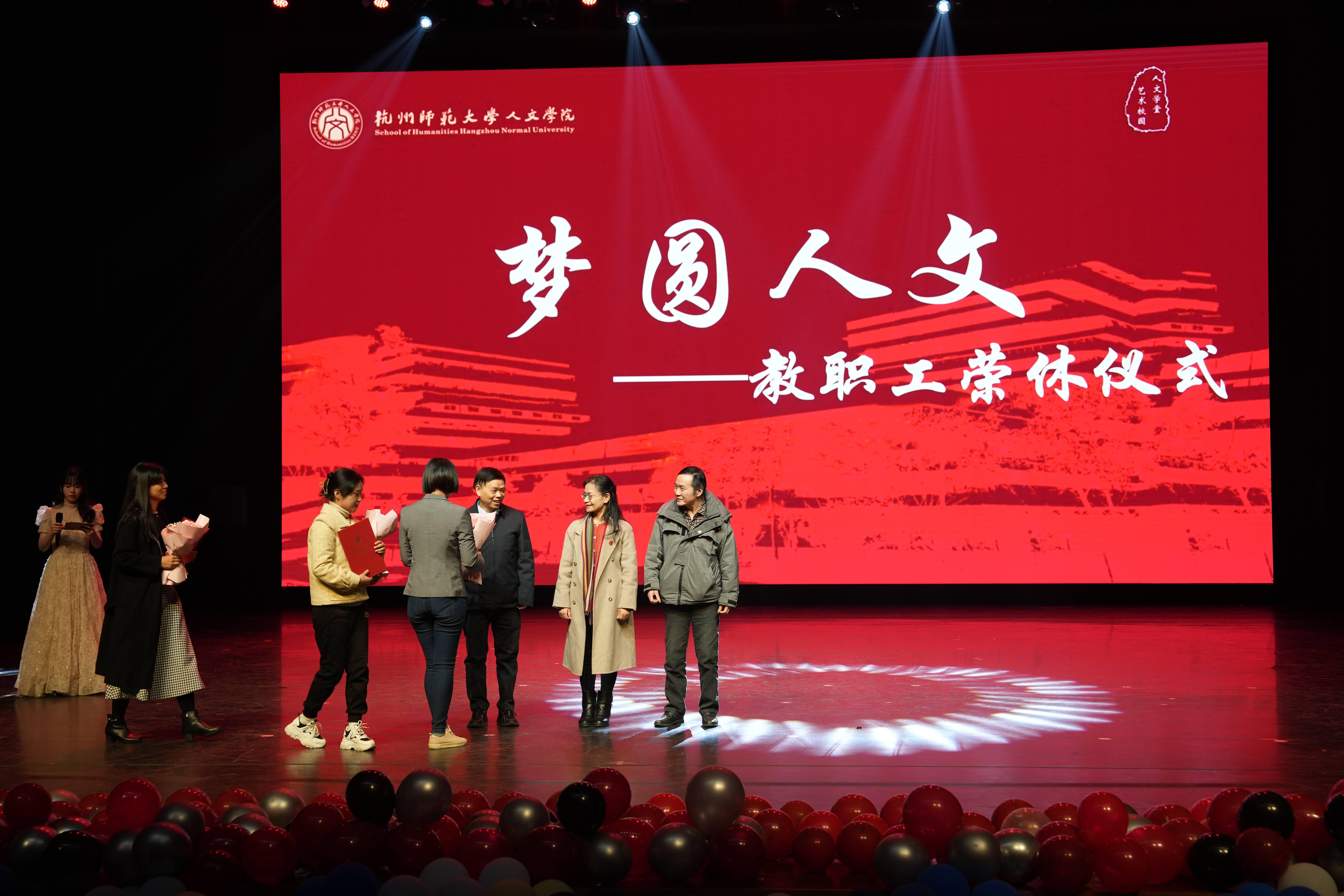 表彰现场还举行了温馨的教职工荣休仪式。在播放了退休教职工数十载耕耘育人视频后,新入职教师为退休教师献花,退休老师为新教师佩戴人文徽章。退休教职工代表张卫良发表退休感言,祝福学院未来发展蒸蒸日上。