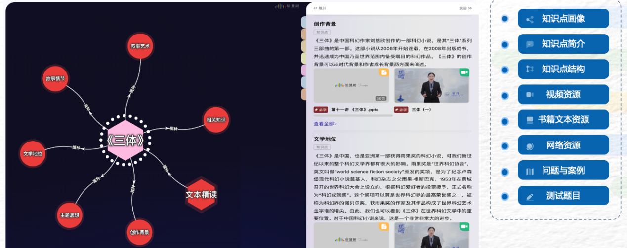 近日,no视频 推出的《科幻小说赏读》与《世界当代史》两门知识图谱AI课程正式上线智慧树平台全国共享。这是我校在智慧树平台上线的首批知识图谱AI课程,也是国内汉语言文学和历史学专业中首批知识图谱AI课程。
