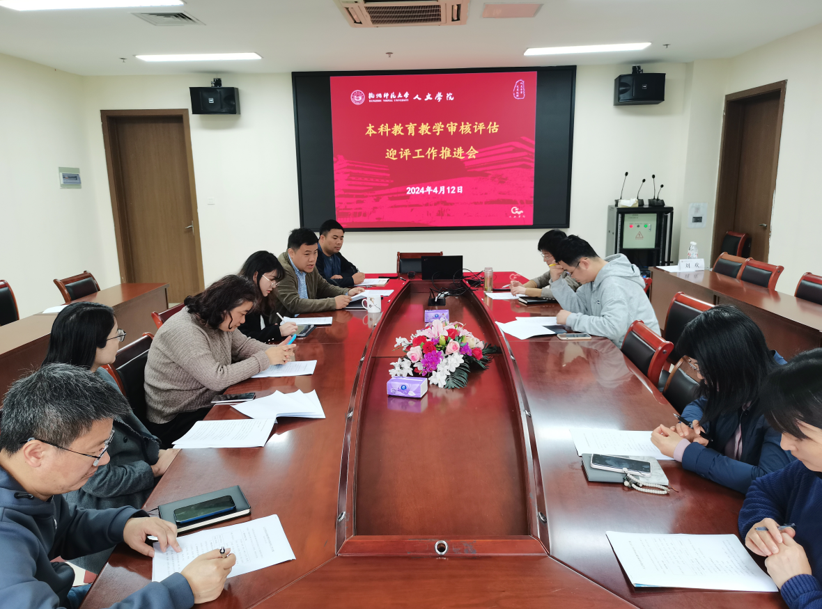 于4月12日上午在恕园12-312召开本科教育教学审核评估迎评工作推进会。学院领导,各系(教研室)主任及各行政科室负责人参加会议。
