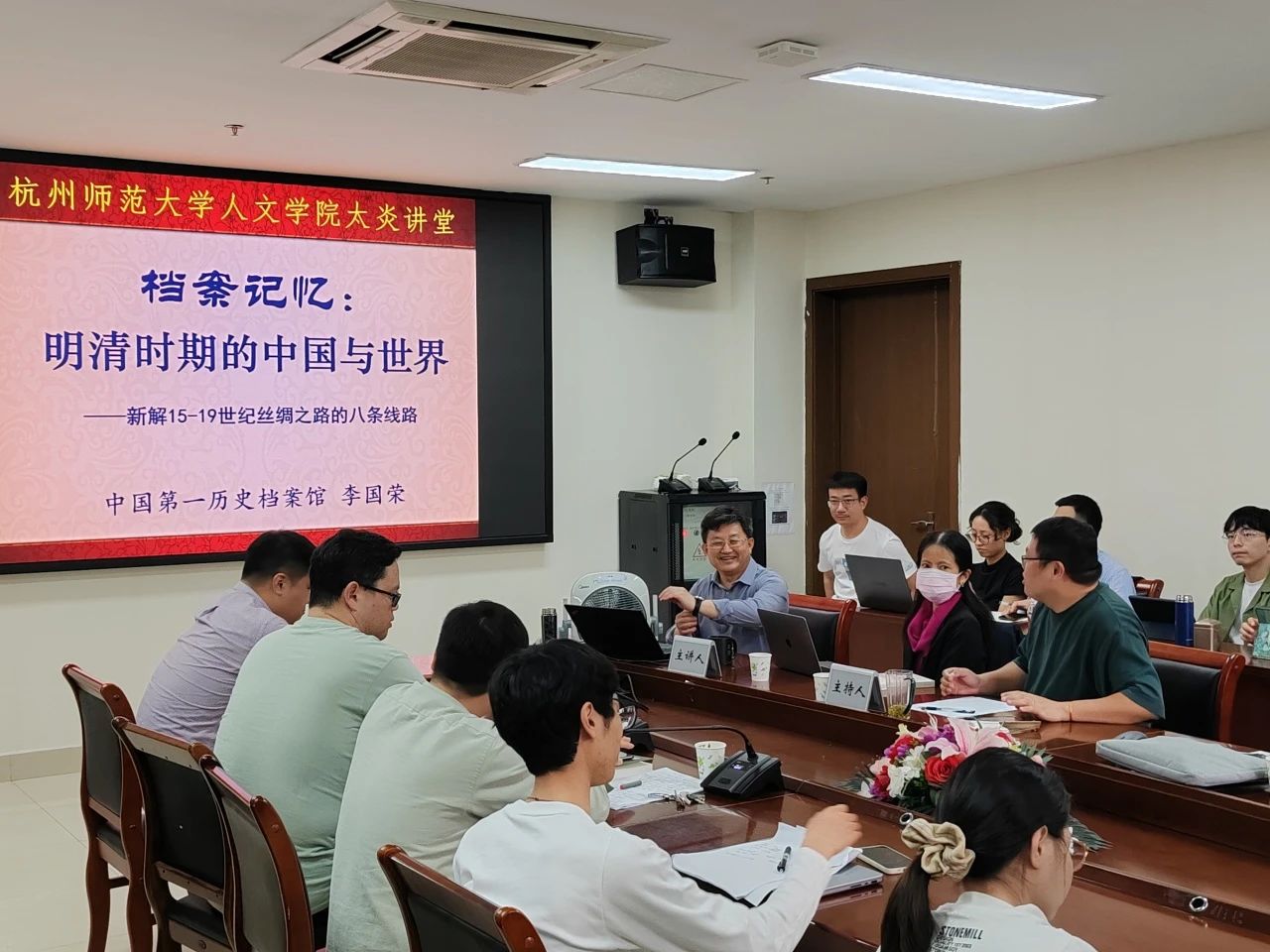4月15日下午,由no视频 主办的太炎讲堂系列讲座“档案记忆:明清时期的中国与世界”于no视频 仓前校区恕园23号楼312教室顺利举办。本次讲座由中国第一历史档案馆的李国荣研究员主讲,no视频 周东华教授主持,no视频 陈兆肆教授、林航教授、陈先松教授与谈,no视频 师生积极参与。