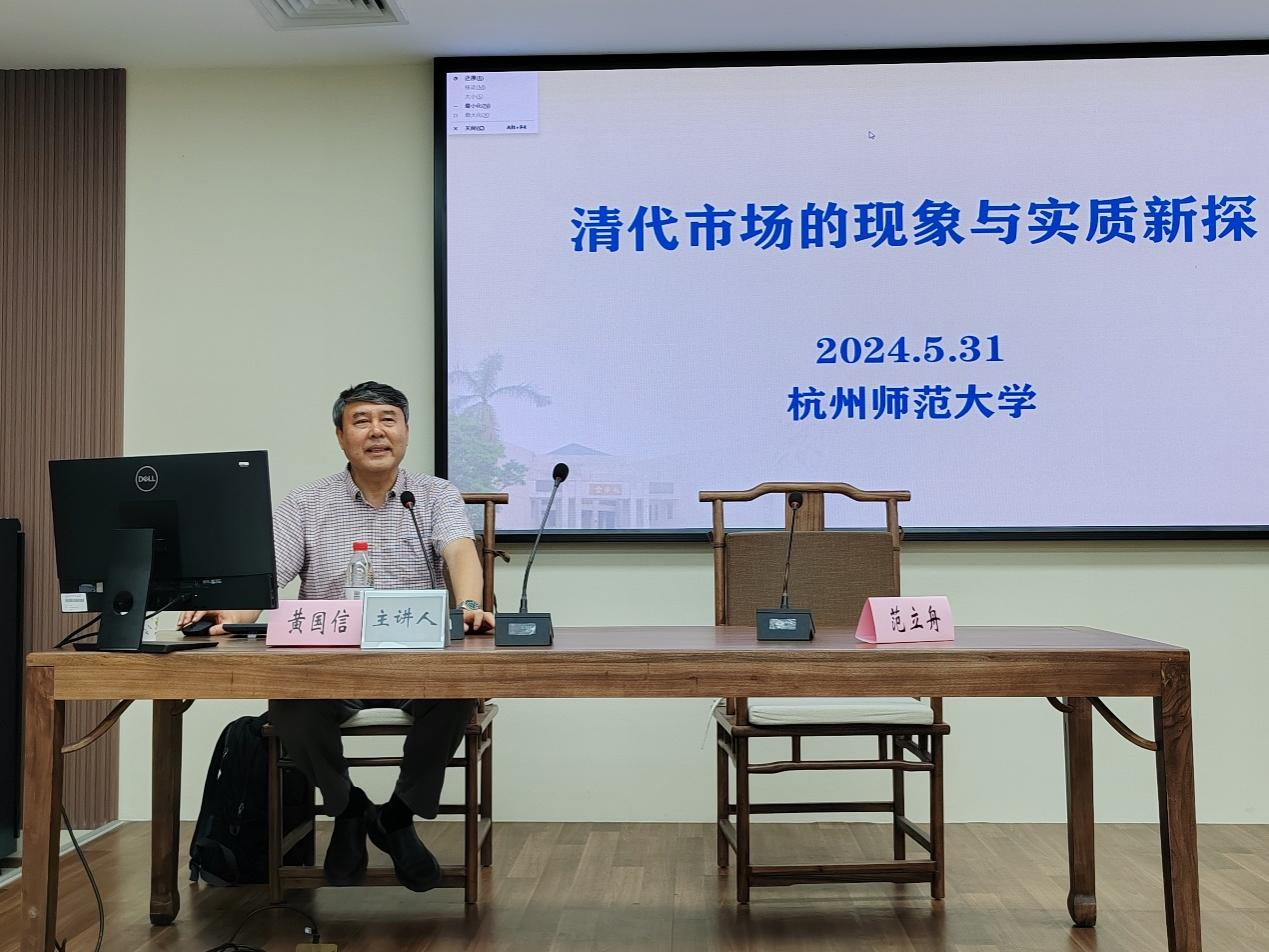 5月31日下午,由no视频 主办的太炎讲堂系列讲座“清代市场的现象与实质新探” 于no视频 仓前校区恕园23号楼314教室顺利举办。本次讲座由中山大学历史系黄国信教授主讲,no视频 范立舟教授主持,陈兆肆、周东华、陈先松、张赟冰、琚小飞等教师及研究生、本科生近60人参与讲座。