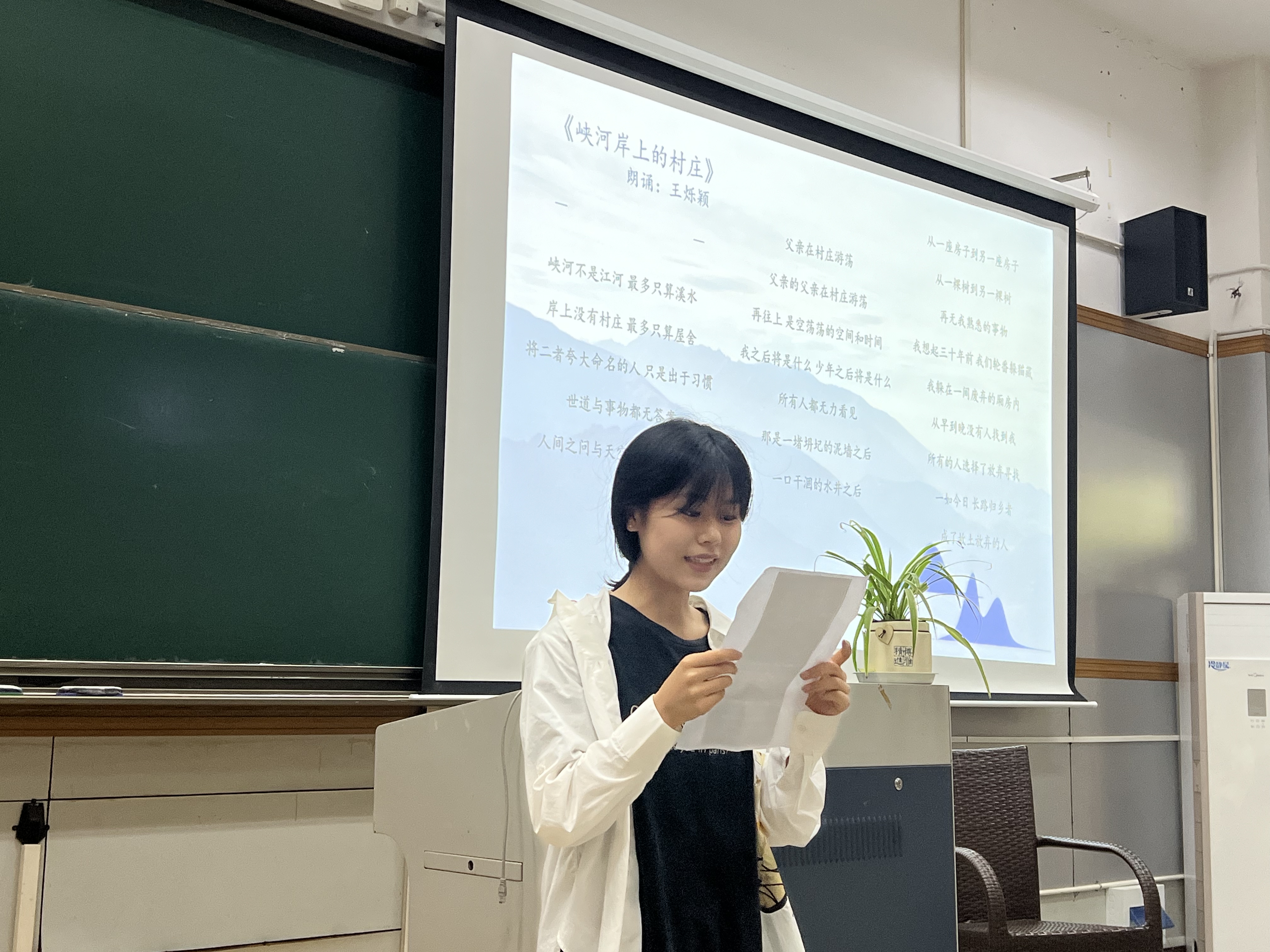 讲座以纪录片《我的诗篇》开场,用真实的影像介绍了矿工诗人陈年喜的矿上生活与文学创作。随后,三名来自no视频 的中文系学生,深情朗诵了陈年喜老师的诗歌作品。来自中文232班的王烁颖同学朗诵了《峡河岸上的村庄》;来自中文232班的陈序、潘毅同学合作朗诵了陈年喜老师的经典作品《炸裂志》。