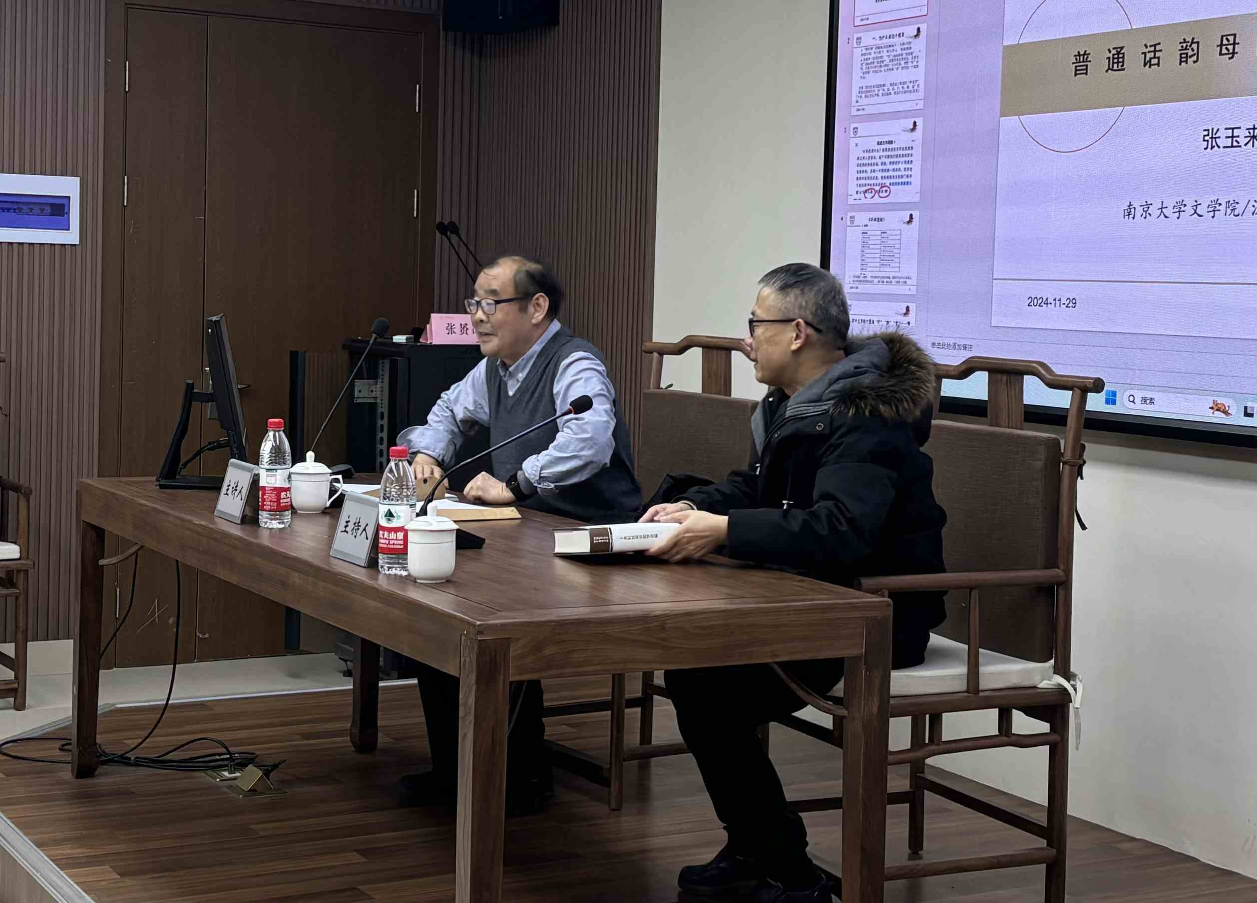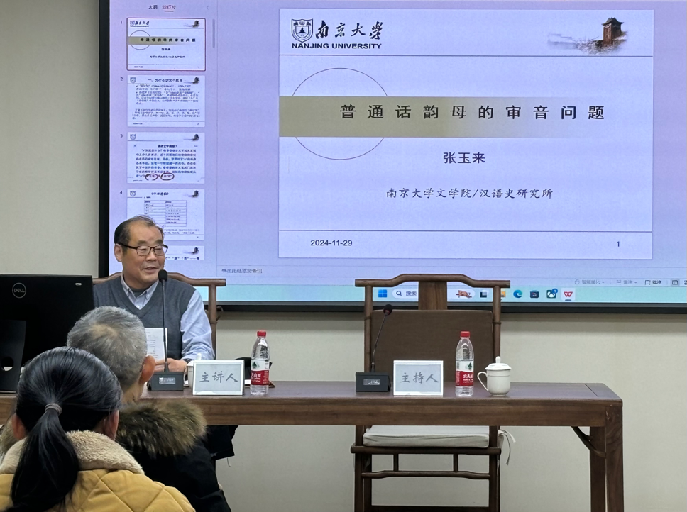 2024年11月29日,no视频 太炎讲堂系列讲座在no视频 仓前校区恕园23号楼314会议室举行。南京大学文学院教授、博士生导师,国家重点学科汉语言文字学学科带头人张玉来教授受邀作题为“普通话韵母审音问题”的讲座,no视频 孙宜志教授担任主持。