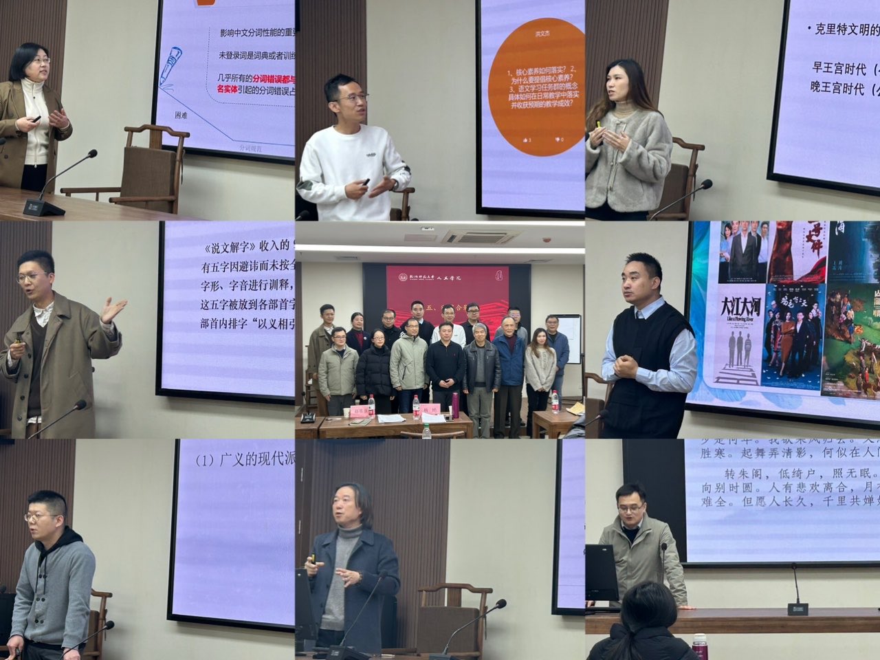 本次大赛共开设教师教学创新竞赛、青年教师教学竞赛及教师智慧教学竞赛三个赛道。教师教学创新竞赛主要考查教师教学成果方面的创新及推广,反映教师对先进教学理念、教学策略等的掌握和应用,重点关注教师如何通过教学改革提升教学创新能力,对于教学过程中的痛点问题进行有效解决。来自汉国教教研室的单宝顺、文艺学教研室的杨向荣、俞晓霞分享了各自专业领域的前沿创新成果。青年教师教学竞赛主要锻炼青年教师(40周岁以下)的教学设计能力和业务水平,重点关注教学展示的高阶性、创新性和挑战度。中教法教研室、中国现当代文学教研室、中国古代文学教研室、近现代史教研室、古代史教研室皆推荐出优秀教师展现出扎实的专业素养和卓越的教学才能。教师智慧教学竞赛主要考查教师在课堂教学过程中对于数字技术的掌握和应用,及如何运用先进的人工智能技术和信息化手段进行教学、师生互动等,重点关注课程资源平台的建设以及AIGC应用。来自语言学教研室的那日松,以前瞻性思维将智慧化、信息化手段融入中文分词的教学和科研运用,体现了对提升教学与科研质量的不懈追求。