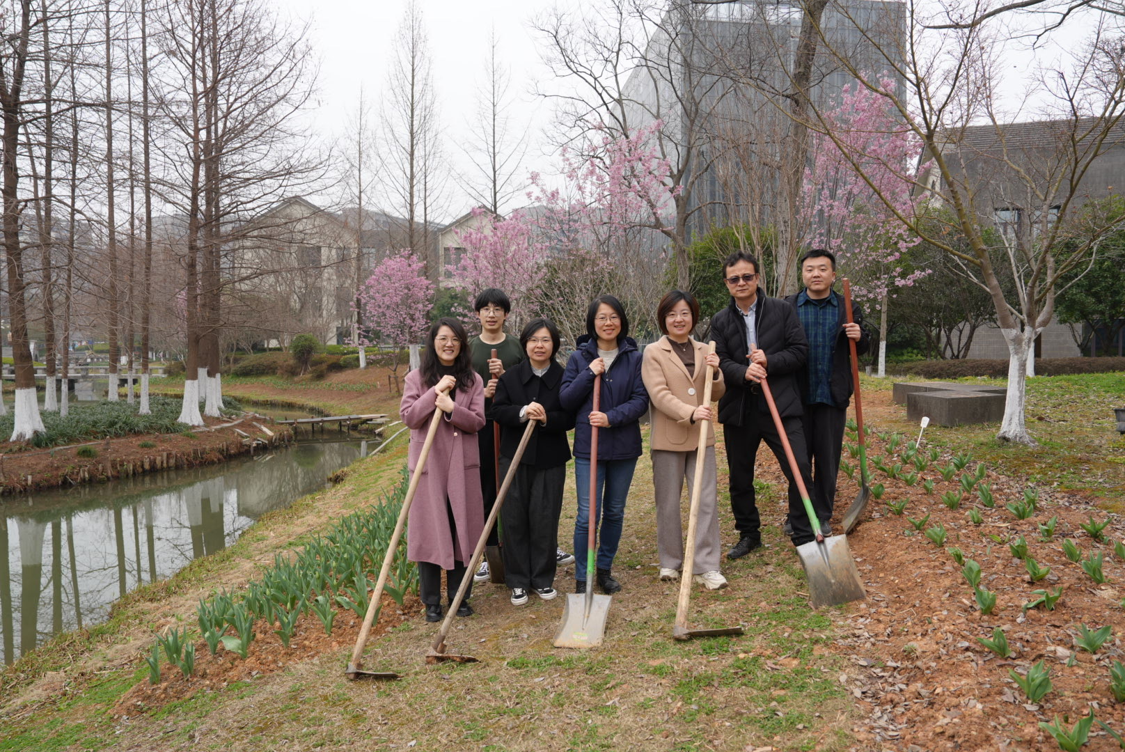 当天,学院领导班子同新进青年教师在恕园23号楼门前种植樱花,共庆植树节。