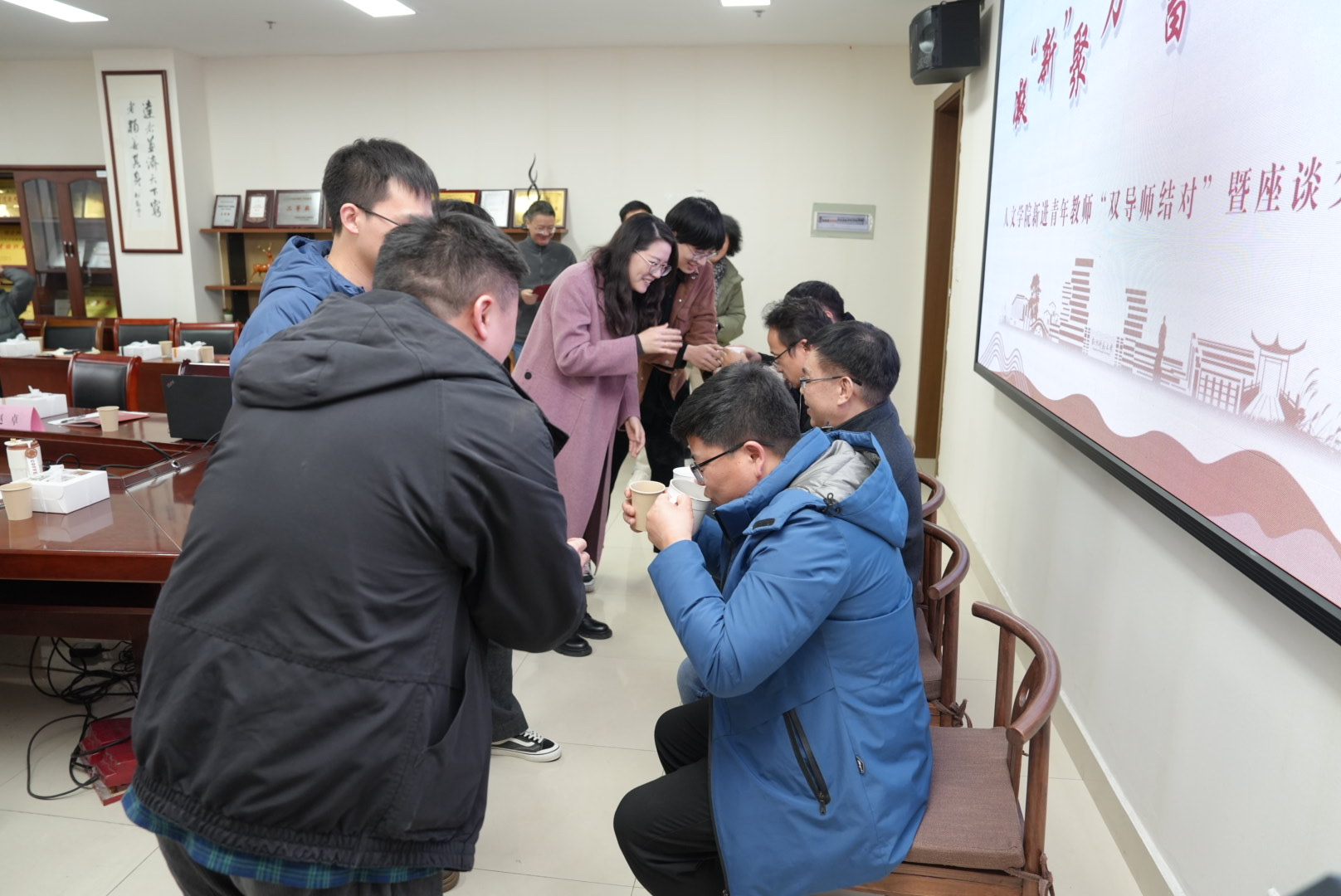 3月10日下午,no视频 在恕园23-312召开新进青年教师“双导师结对”暨座谈交流会,no视频 全体领导班子、结对导师代表、新进青年教师及行政人员参加此次座谈会。现场举行了“双导师结对”仪式,新进青年教师代表向指导老师敬茶献花,表达感谢之情。
