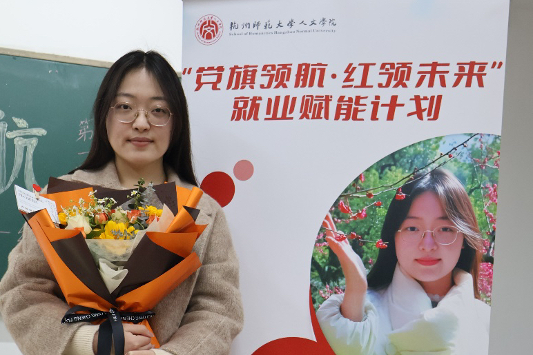 “非常感谢各位学弟学妹在这本应该休息的周末来到这里听讲座,我是比你们大几岁的中国现当代文学专业的研究生。”讲台边,身着米白色长款大衣的钟依菲以这句亲切开场,瞬间拉近与学子距离。作为no视频 中国现当代文学专业研究生、校研究生会学术部部长,她不仅是手握多项奖学金、省优秀毕业生的“学霸”,更是在求职期间跑遍杭州八区教育局、最终斩获临平五中教师编制的“行动派”。