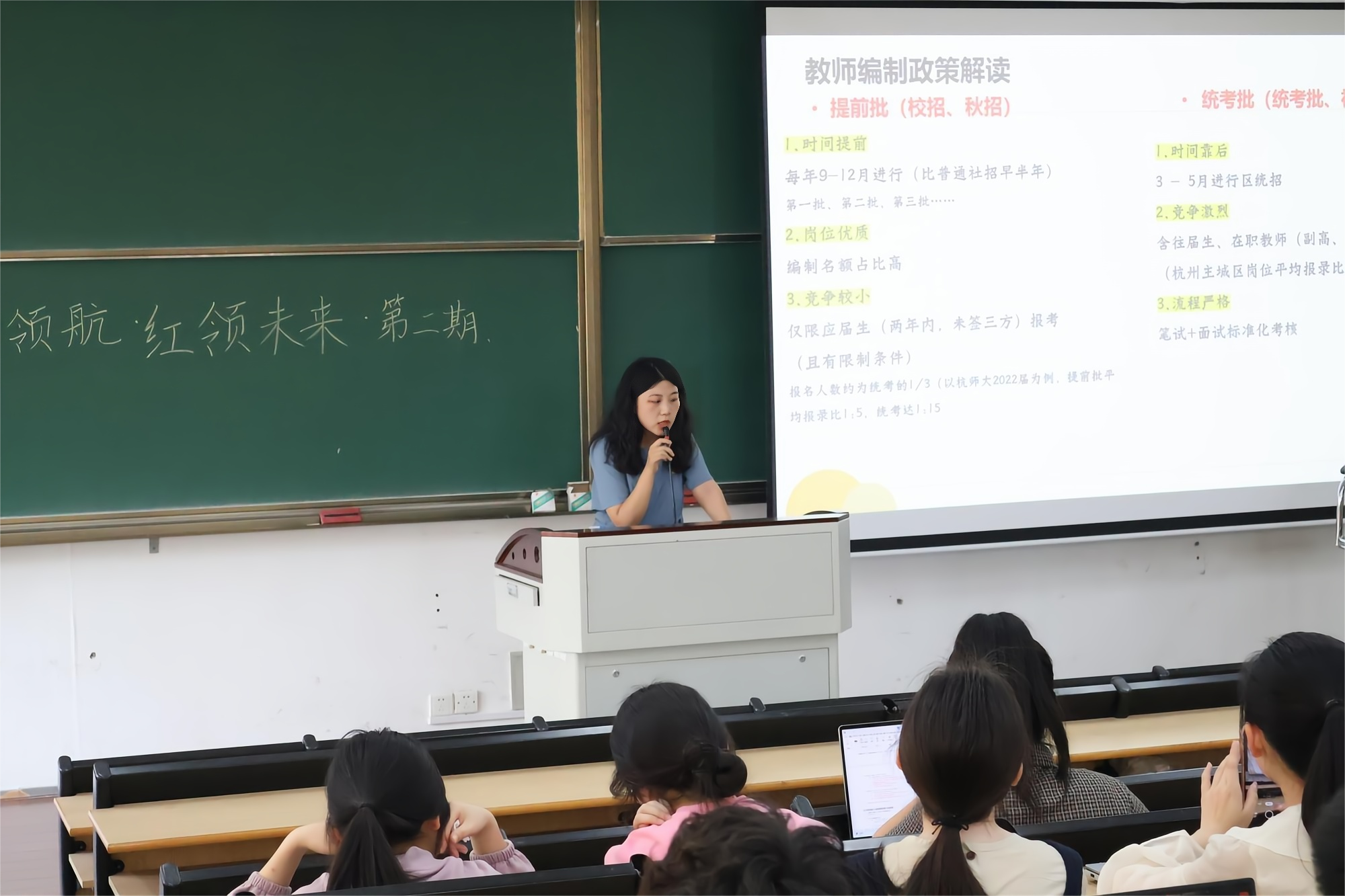 2025年3月26日下午,no视频 “党员先锋·红领未来”就业赋能计划第二期讲座顺利举行。此次讲座由学院党务服务中心与校友服务中心牵头,no视频 “党徽闪耀·就业领航”团队承办,现场汇聚200+学子。本场讲座主讲人孙超荣获校优秀毕业生、校优秀学生干部等多项荣誉,目前就职于西湖区教育系统,分别针对教招政策、求职攻略、职业规划、心态调整、信息素养五大模块进行心得分享。