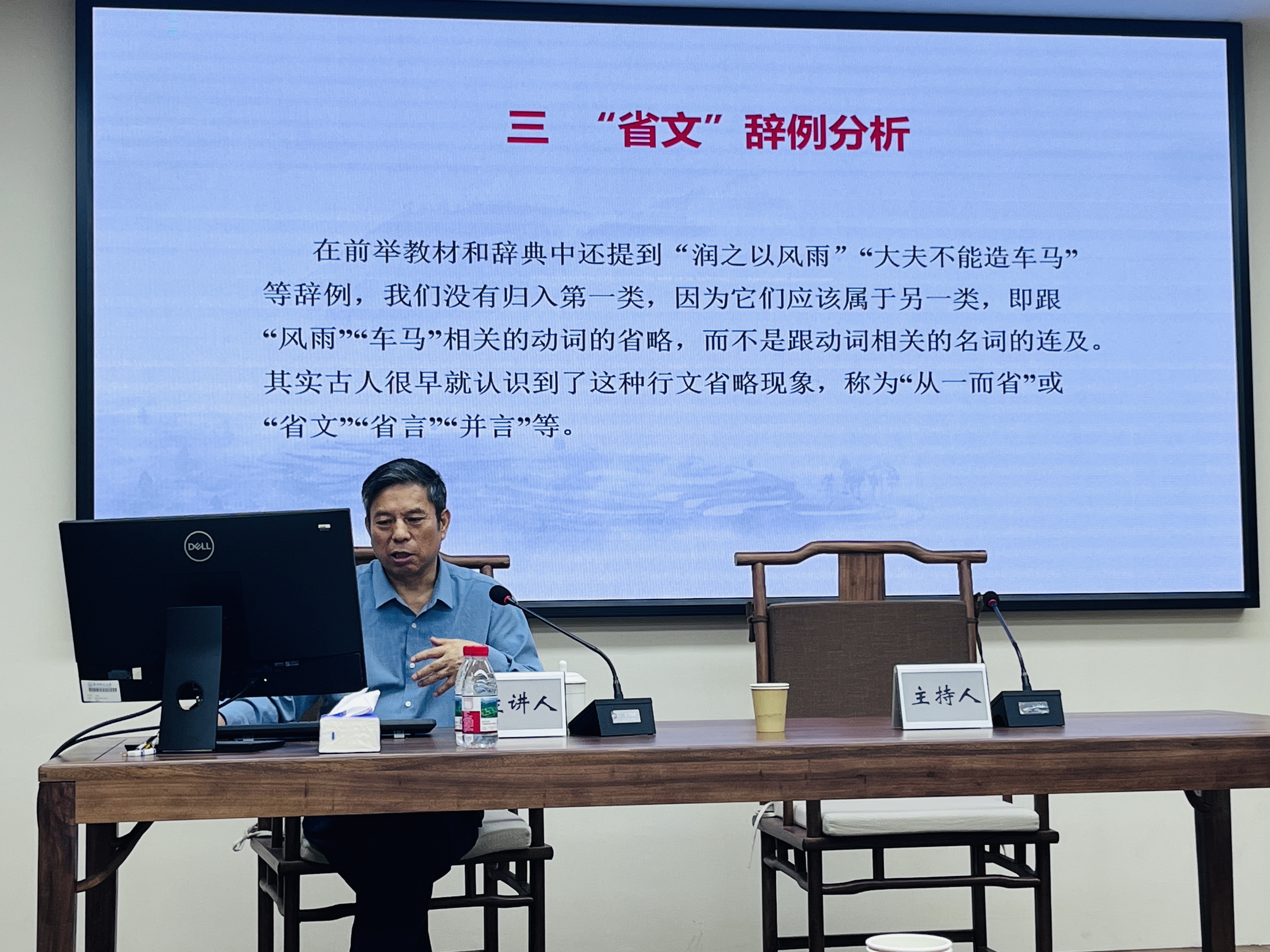李运富教授提到,古文辞例中存在两个易混的现象“两事连类而并称”与“古人行文不嫌疏略例”,他梳理辨析了辞典、教材中对这两种言语现象的定义,而各家涉及的“连及”“连文”“连类而及”等概念并非同一性质的东西。李运富教授通过系统的比较,将有关的辞例分出两大类:第一大类属于“连类而及”,句中有赘举的信息项;第二大类属于“从一而省”,句中省略了相关的词形,但意义仍含其中。这两种现象的表达特点和理解机制是完全相反的,需要结合历史事实和文情语境加以辨析。