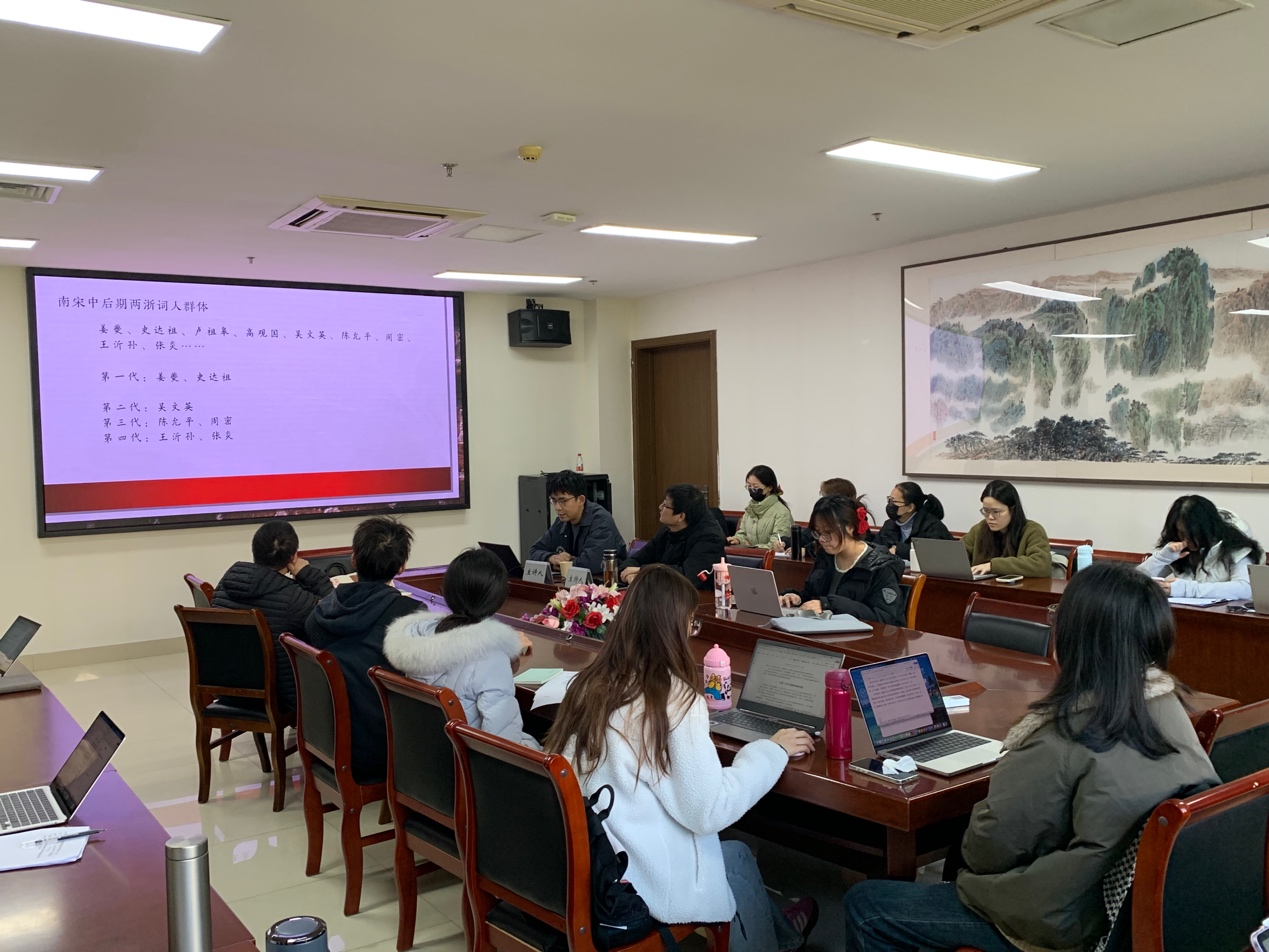 此次讲座主要是围绕赵惠俊老师词学研究内容的一个切片展开,着眼于南宋后期两浙词人这个群体,分析他们之间的人际关系脉络,以此来深度发掘两浙词人作品之间的关联性,并以其中较有代表性的、具备一定承上启下作用的词人周密来作为考察的基准点。赵惠俊老师以条理明晰、深入浅出的语言进行讲解,向no视频 师生们介绍了此项研究的逻辑、方法、结论和意义,并提出了独到的见解。