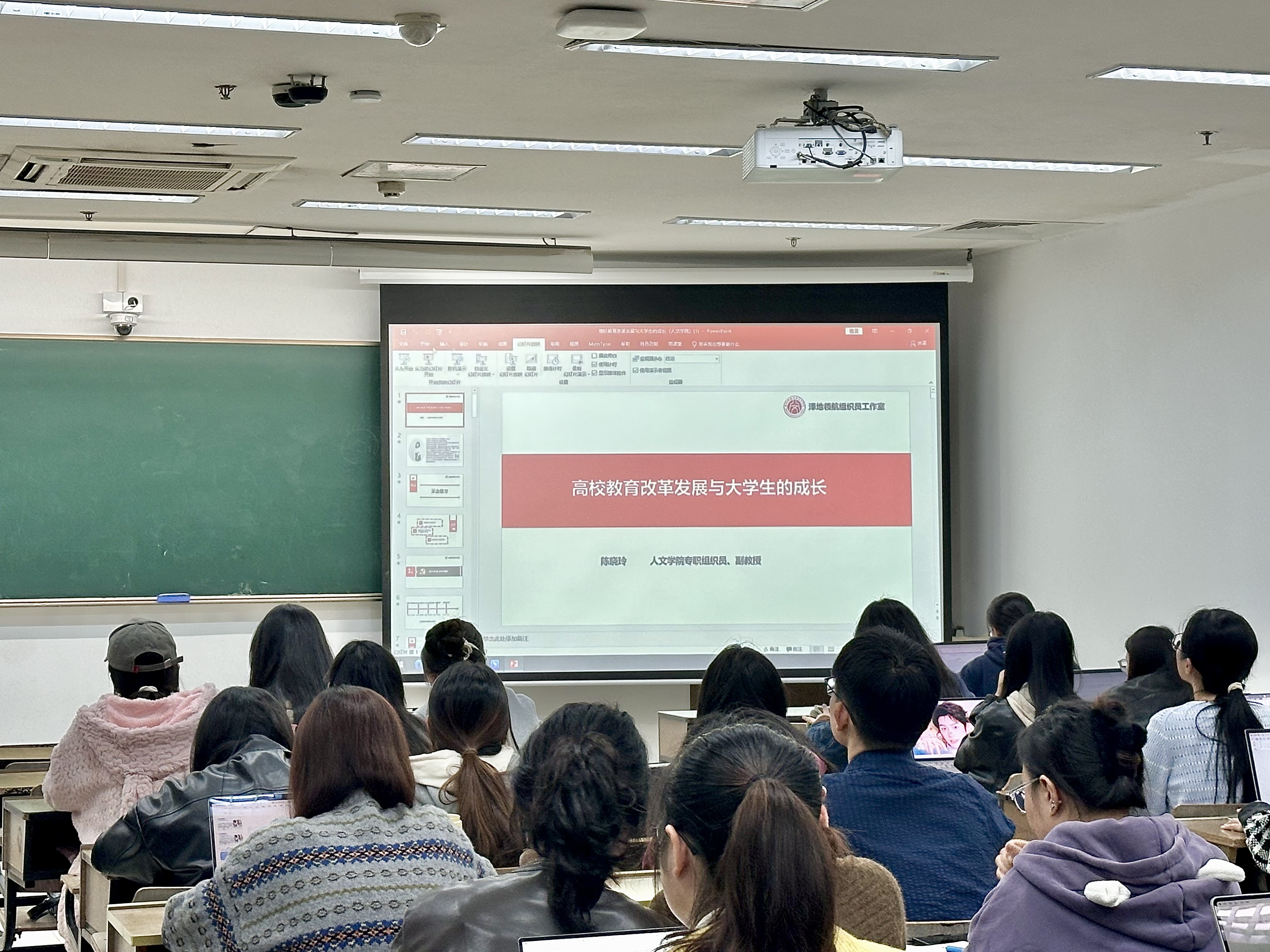 11月2日晚,余洁老师在恕园10-102教室面向全体发展对象,展开《正确认识当前的形势与任务》的党课培训。余老师将“当前新形势如何认识”、“现在新部署应怎么看”、“未来新任务该如何干”三个问题作为总体叙述脉络,用深入浅出的例子对当前的形势与任务进行了细致的讲解。着眼当前新形势,余老师聚焦我国经济、政治等领域分析了我国当前的发展状况,例如我国当前经济成就巨大,但仍存在科技创新能力不足等内部问题和严峻的对外局势,这些成就与问题激励着我们奋力开创我国高质量发展新局面。面对现在新部署,余老师通过对党的历届四中全会的回溯,分析其历史主线的逻辑,引导学员们全面理解党的二十届四中全会的目标原则。放眼未来新任务,余老师鼓励发展对象们要挺膺担当,肩负起新时代青年大学生的使命与责任,同时分析了全面创新的重要意义与发展新质生产力的必然要求,强调科技自立自强的必要性,提倡学员们跨学院组队,共同学习进步。面对人工智能时代的到来,余老师建议人文学科积极地拥抱AI技术,同时也强调人机协同中人类创造力的核心地位。最后,余老师寄语各位发展对象要“又红又专”,品德为先,能力为重,成为全面发展的后备干部人才。
