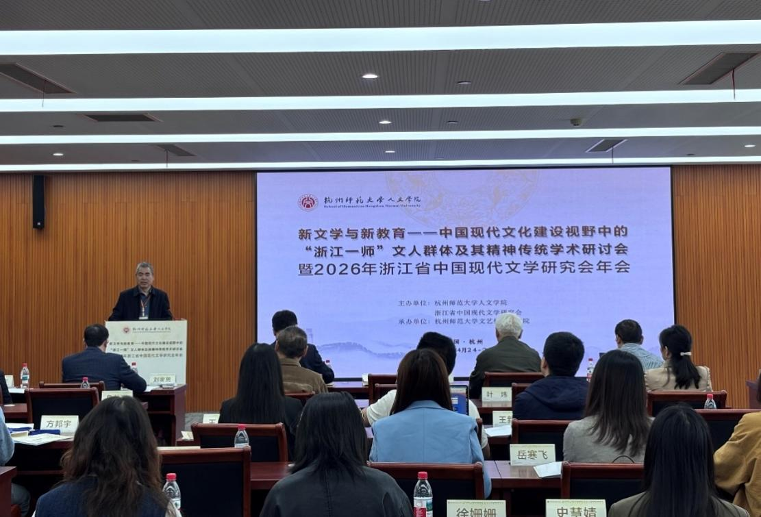 2026年4月25日,新文学与新教育——中国现代文化建设视野中的“浙江一师”文人群体及其精神传统学术研讨会暨浙江省中国现代文学研究会2026年学术年会在no视频 仓前校区学术交流中心举行。本次会议由no视频 与浙江省中国现代文学研究会主办,no视频 文艺批评研究院承办。来自省内外高校和科研机构的70余名专家学者及研究生参加了会议。与会学者从文学教育视角切入,深入探讨中国现代文化建设视野中的“浙江一师”文人群体及其精神传统。