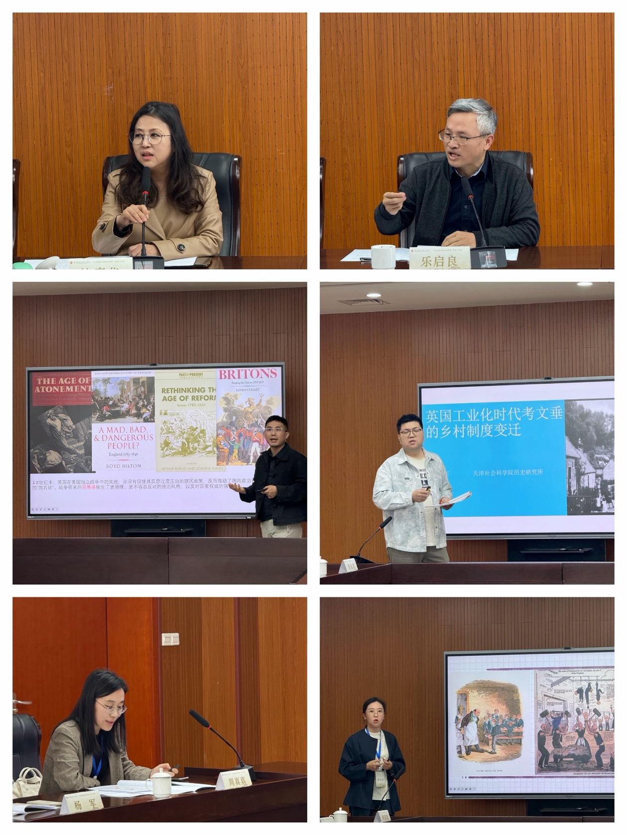 下半场的会议讨论,在《no视频 学报(社会科学版)》编辑部主任蒋金坤的主持下展开。首先,南京大学于文杰教授以《交往中的乡村文化:里奇家族的东方之旅及其反思》开篇,no视频 孙超副教授评议。于老师以英国里奇家族三代人(安德鲁、伯纳德、大卫、约翰等)跨越19世纪末至21世纪初的东方之旅为线索,探讨了文化交流中的“交往”与“变异”问题。论文重点审视了这一跨文化实践的内在矛盾——原本作为反抗工业资本主义和殖民帝国文化的英国艺术社会主义,在进入东方后,其艺术符号却被编入日本殖民帝国的文化谱系之中,甚至存在为军国主义招魂的风险。其观点突破了文化交流只带来融合创新的单向度论述,尖锐指出其中可能被帝国主义收编、变异的黑暗面。随后,张正萍副教授报告了《商业及其限制:埃德蒙·柏克的政治经济学》。张老师在论述中清晰地呈现了柏克思想中常被误解的复杂性,并梳理了学术史上的关键争论。尤其是揭示了柏克如何将冰冷的“商业法则”上升为神圣的“上帝的法则”,并设计出市场遵循交换正义,困境转向宗教慈善的二分结构。这为理解柏克看似矛盾的“不干预”思想与“家长式”行动提供了一种自洽的基督教版的政治经济学解释框架。接下来,倪正春副教授讨论了《英国圈地治理模式的变革:从私人圈地法案到一般圈地法案》。倪老师阐述了18世纪末至19世纪中叶,英国圈地模式因私人法案成本高、效率低及粮食短缺、公地保护等矛盾,通过四部里程碑式的一般法案,完成了从私人申请到国家统筹的治理变革。其论述中尤其精彩的是,既用数据确凿证明了立法成本从数百英镑断崖式降至十余英镑的真实降费效果,又深刻揭示了圈地理念如何从单纯维护私权至上,转向兼顾为居民留出休闲空间等公共利益的现代化转型。随后是冯雅琼老师题为《利益权衡与博弈:20 世纪 60年代英国入欧谈判中的农业议题》的报告。冯老师的研究聚焦20世纪60年代英国申请加入欧共体谈判中的农业议题,揭示这不仅是经济问题,更是涉及国家战略转向与多方博弈的关键。此研究基于查塔姆研究所档案,将农业问题作为联结国内政治、国际关系与制度变迁的战略性议题来分析,清晰呈现了英国政府、国内利益集团、英联邦国家及欧共体成员国各自的权衡计算,剖析了深层的结构性矛盾。最后是刘宏焘老师的《“绿色革命”研究的范式演进与认知转向》,刘老师系统梳理了“绿色革命”概念的演变及不同时期学者对它的研究。在论述中,刘老师清晰地点明了研究从“技术救世”到“技术政治化”的范式转换,揭示了增产神话背后被牺牲的底层农民、女性和自然环境;并整合了政治经济学、权利分析、环境史和地缘政治等多重视角,超越了单纯的效率与公平之争。两场报告的讨论气氛热烈,问题意识突出。